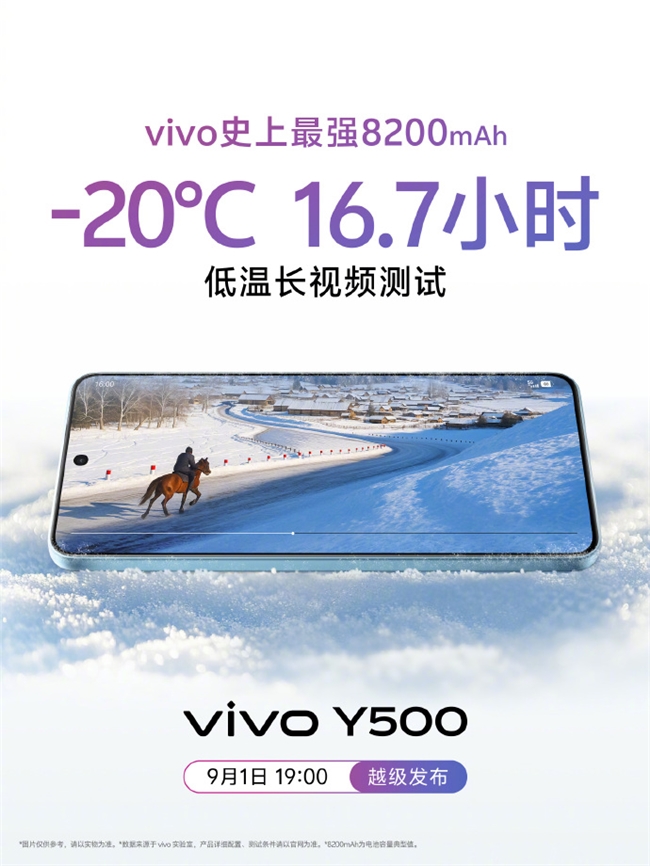 9月1日,vivo Y500即将震撼发布,这款集续航、耐用、信号、音质、设计于一身的手机,会给我们带来多少惊喜呢?让我们一起期待吧!