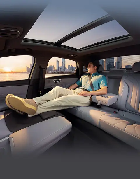 车内配备的全景沙发躺椅以及慕斯舒压座椅,是荣威M7 DMH舒适性的重要体现。全景沙发躺椅让乘客在长途旅行中能够找到一个舒适的休息姿势,仿佛置身于家中的沙发一般惬意。您可以半躺下来,闭上眼睛,享受着旅途中的宁静与舒适。慕斯舒压座椅则采用了特殊的材料黑科技,能够根据乘客的身体曲线提供恰到好处的支撑,有效缓解驾驶疲劳。当您结束了一天的忙碌工作,坐在车内,感受着座椅的温柔包裹,身心都能得到彻底的放松。