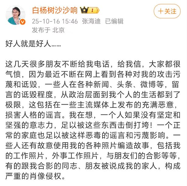 她在轮椅上度过了65年,却比许多站立的人看得更远;她遭受着无端的诋毁,却依然相信善良和真理的力量。然而从编造国籍谣言到恶意解读照片,甚至被攻击身体状况和年龄,她选择不再隐忍,而是坚定地回应:“好人就是好人,任何抹黑都没有用!”这句话,如同她的人生一样,简单而有力。