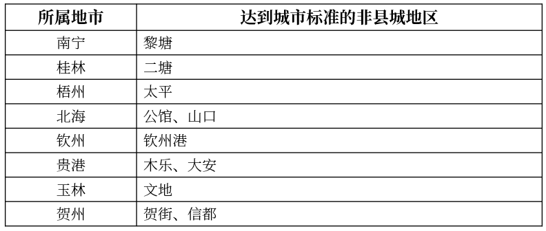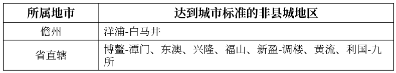以下将广西、海南真实城市中,区划不是正式的地市、县城者列出(具有独立性,与其他城市近似相连的不算!):