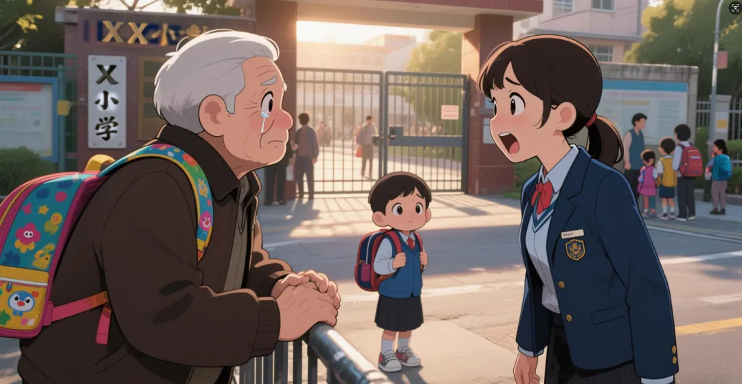 我越看越揪心,突然想起我老汉儿(爸爸)以前送我上学,我摔了一跤他也不敢进学校。现在轮到他当爷爷了,还要遭这种罪。这些老爷子老太太,哪个不是年轻时候吃过苦的?现在好了,退休了本该享福,结果还要帮子女带娃,帮孙娃子背书包。