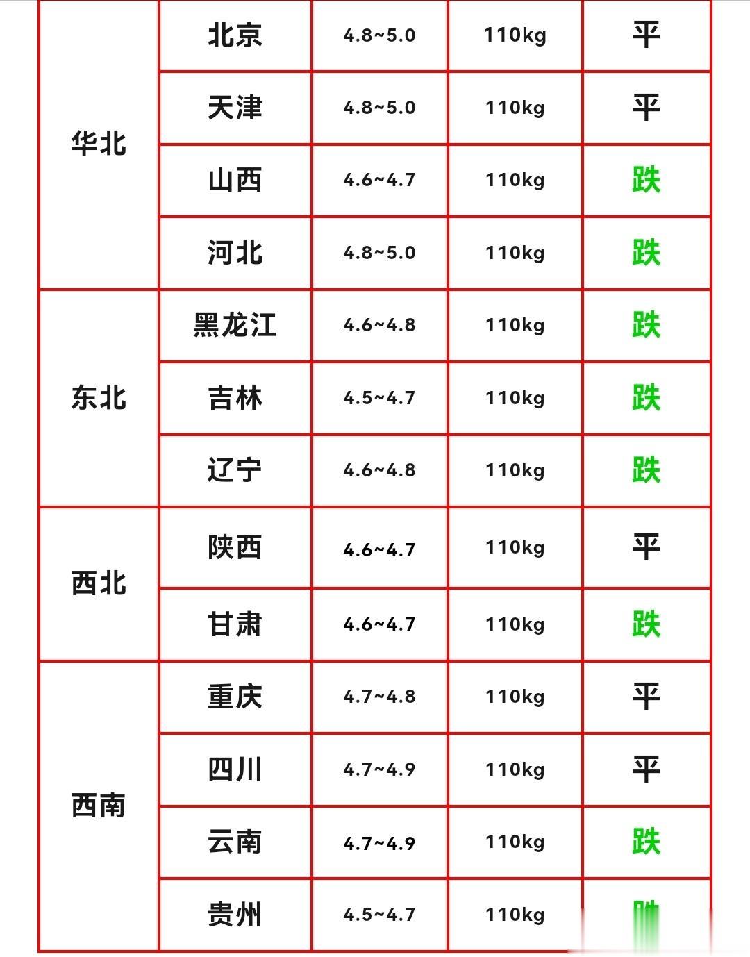 标猪价格高点是上海猪价5.2元/斤,之后就是华东地区、广东猪价的5.1元/斤。猪价高价区只有5元出头,多数地区已经跌到了4块多的猪价。