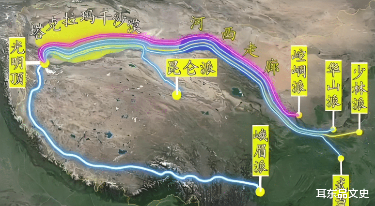 其中少林派在河南,武当派在湖北,峨眉派在四川,华山派在陕西,崆峒派在甘肃,还有最离谱的昆仑派,就在新疆。