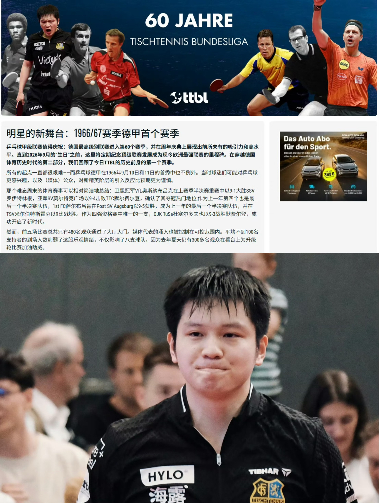 德甲60周年主题首页直接打出他的照片——“传奇”,两个字,响亮又有点分量。要知道,这可是欧洲的地盘,一张主位封面就证明,他不仅是中国骄傲,更成了世界乒坛的门面。