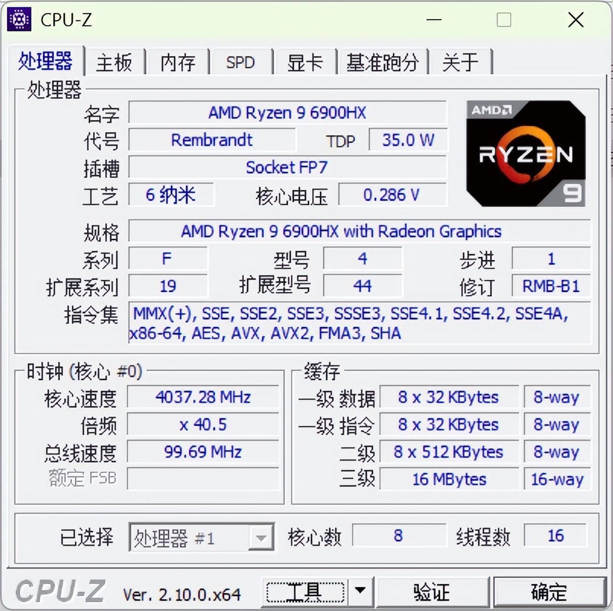 AMD 锐龙9 6900HX处理器采用领先的6nm制程,Zen 3+架构,8 核心 16 线程。基础频率3.3 GHz,最高加速频率为4.9 GHz,采用16MB的L3智能高速缓存。