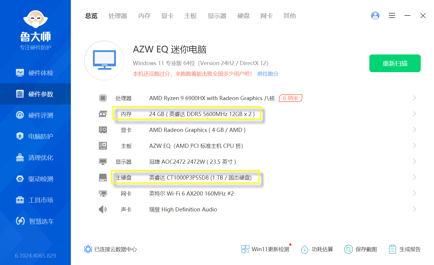 本款标配24GB DDR5内存,也达到了Windows AIPC的最低要求。
