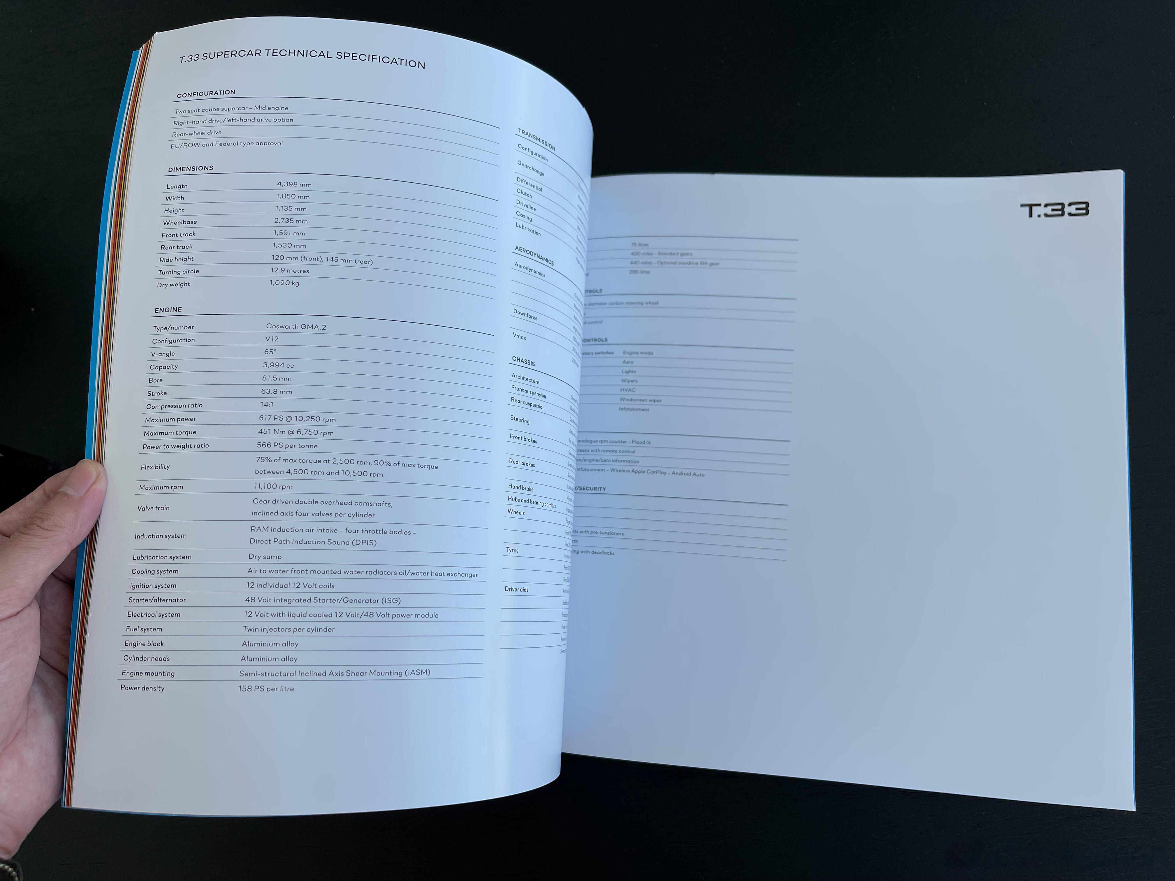 T.33 Spider限量100台,价格并没有比T.50低太多,大概240万美元,相较于T.50的一车难求,T.33还有配额。但是,T.50当年就是突然间售罄,T.33的未来走势还说不好。个人认为,T.33 Spider的排产还需数年,暂时不用着急。