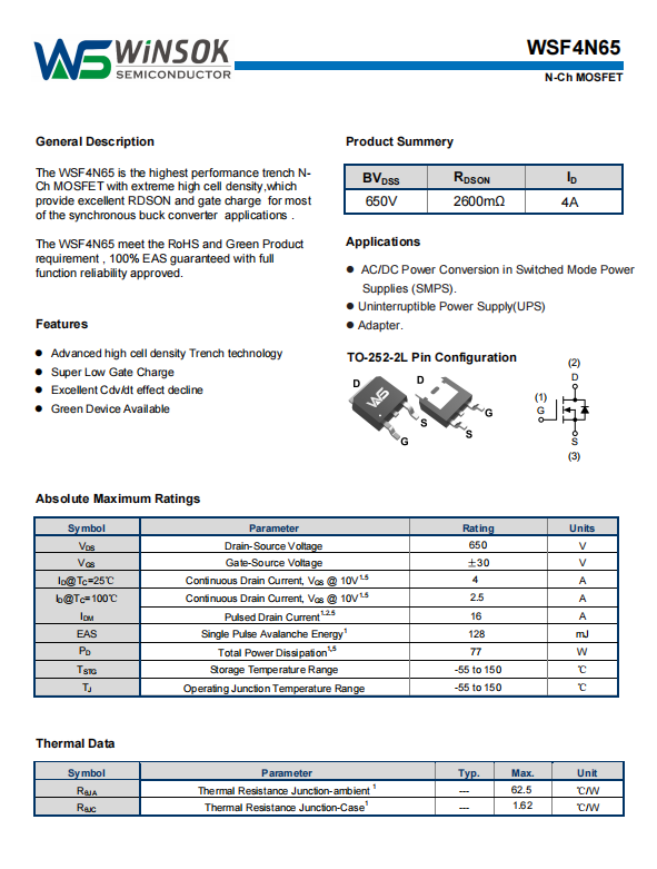 热性能:θjc=0.6℃/W Max, θja=40℃/W Typ @ 标准PCB, RthJA曲线图覆盖-40 to +150℃。
