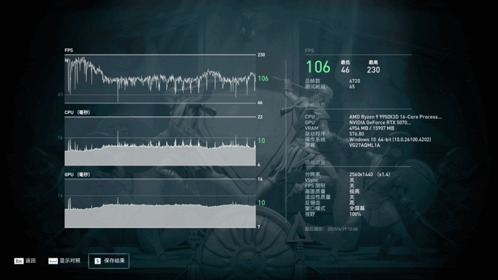 众生平等奥德赛,2K分辨率,画质极高,平均帧率106。英灵殿,2K分辨率,画质极高,平均帧率159。孤岛惊魂5,2K分辨率,画质极高,平均帧率155。孤岛惊魂6,2K分辨率,画质极高,平均帧率183。