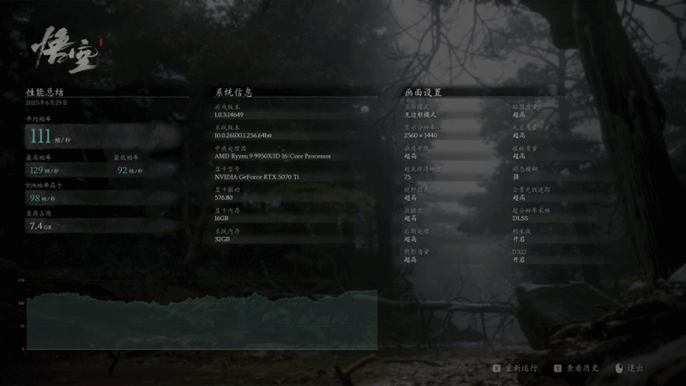 设置界面再看下,接下来是测试游戏跑分。