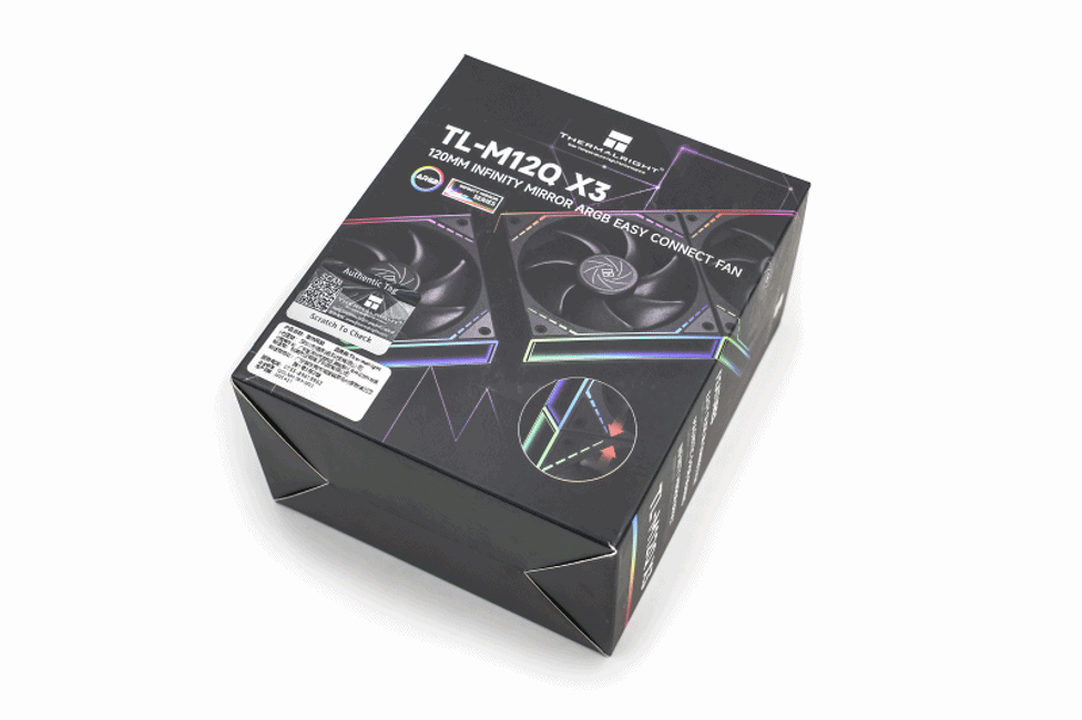 积木风扇选的是性价比拉满的Thermalright(利民) TL-M12Q X3 12cm和TL-M12QR X3 12cm幻彩无限镜框版本,一个是正向,一个是反向。