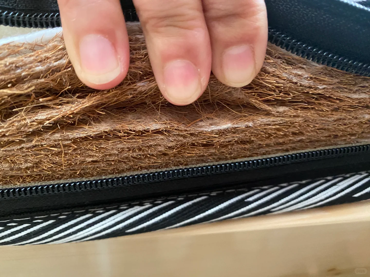 如果你不确定家里的床垫是否是劣质的胶水棕床垫可以顺着床垫儿等解封将其剪开检查一下里面的材质,