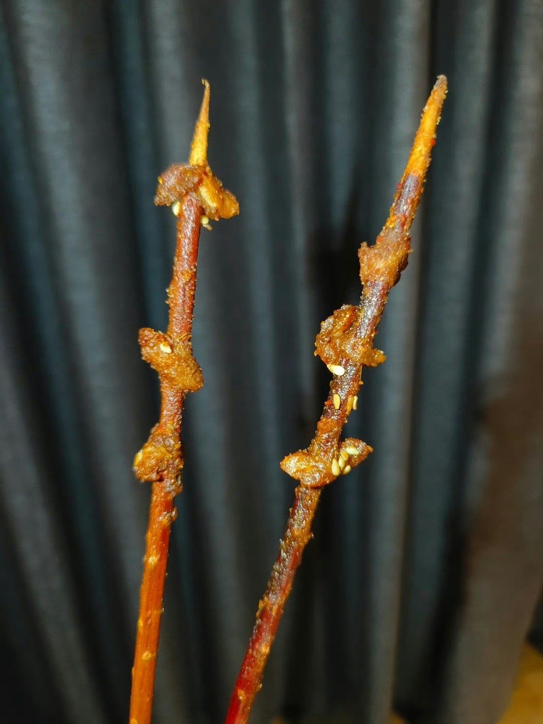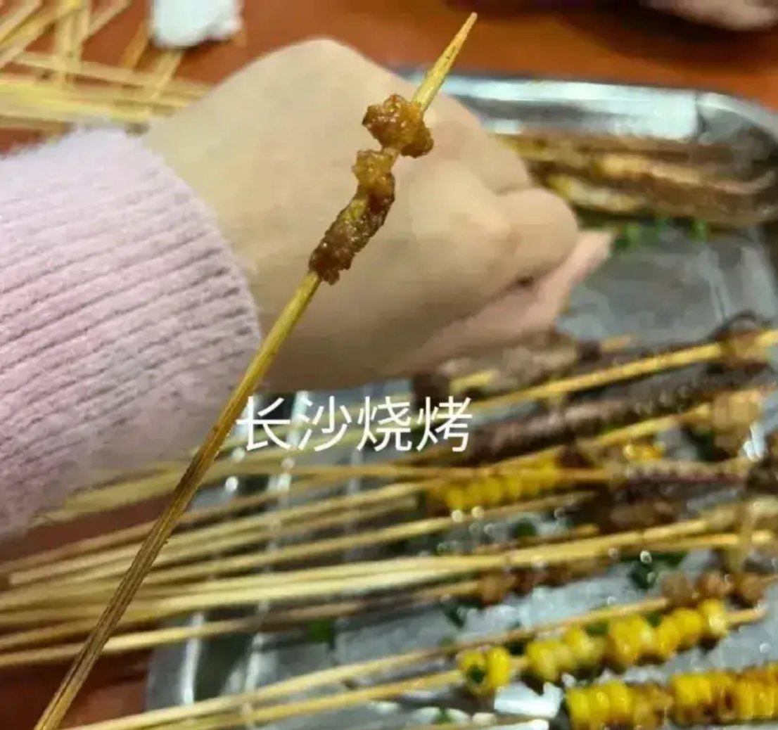 对比之下,淄博烧烤吃完,铁签上的剩肉比长沙烧烤刚上的还多,显得很浪费食物了。
