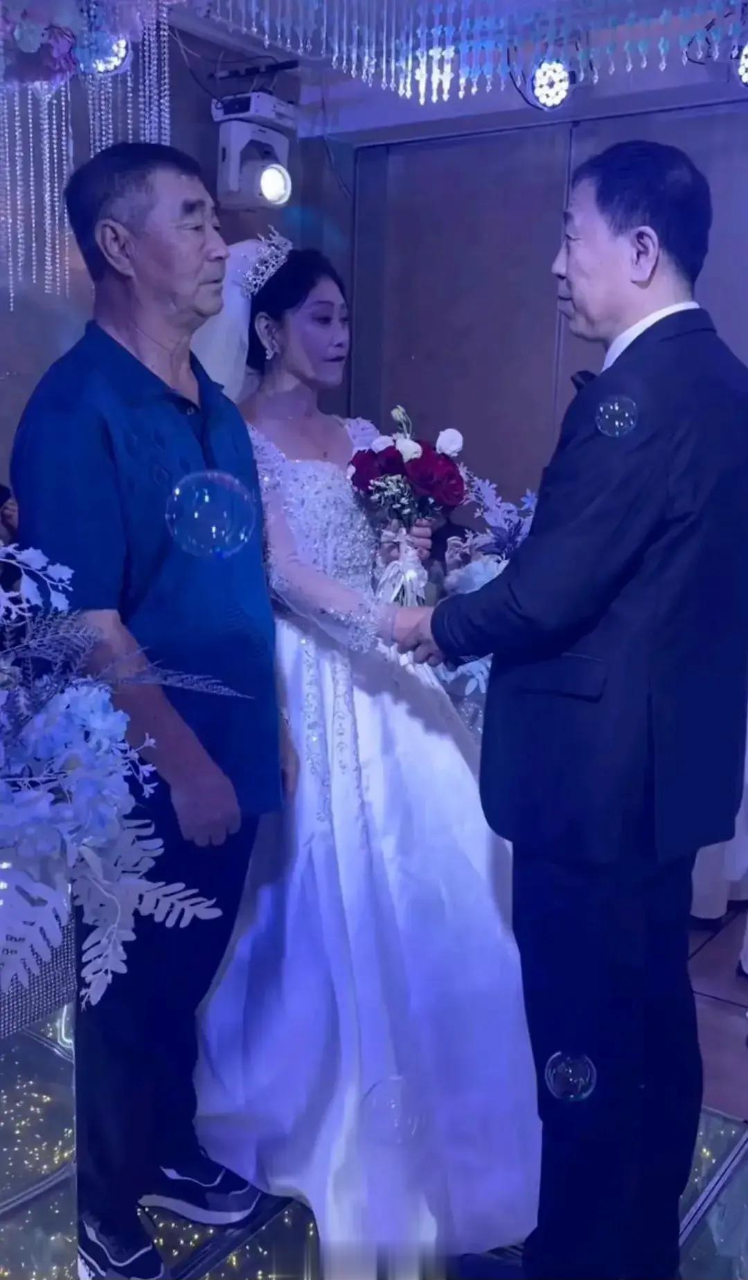 👍穿T恤的父亲,正把自己的“小棉袄”交给穿西装的女婿