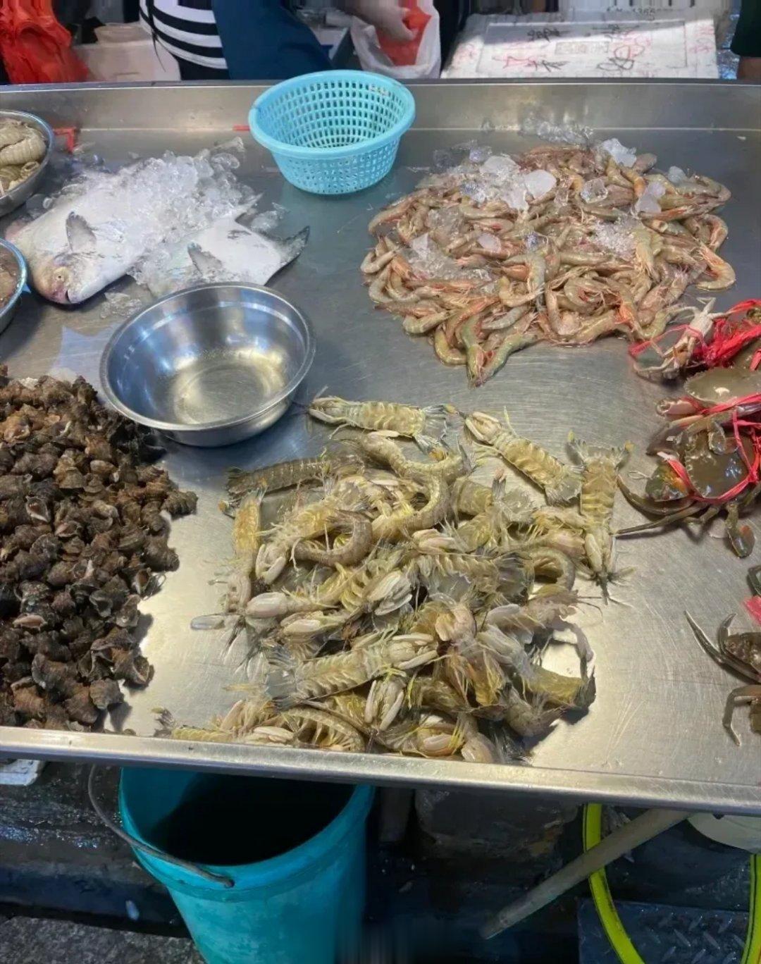 昨天开档,按平时正常的货量进,早市那会儿还可以,卖了有好几十斤,但晚市突然就感觉没什么人逛海鲜摊这边了。