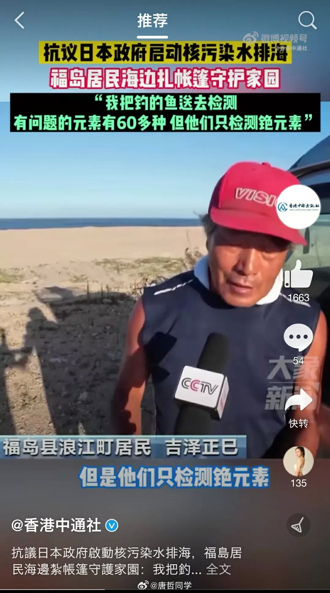 日本排核污水遭自己人打脸。日本排污后自己安排检测说指标安全,香港女记者亲测实锤,被日反华民众挤怼。
