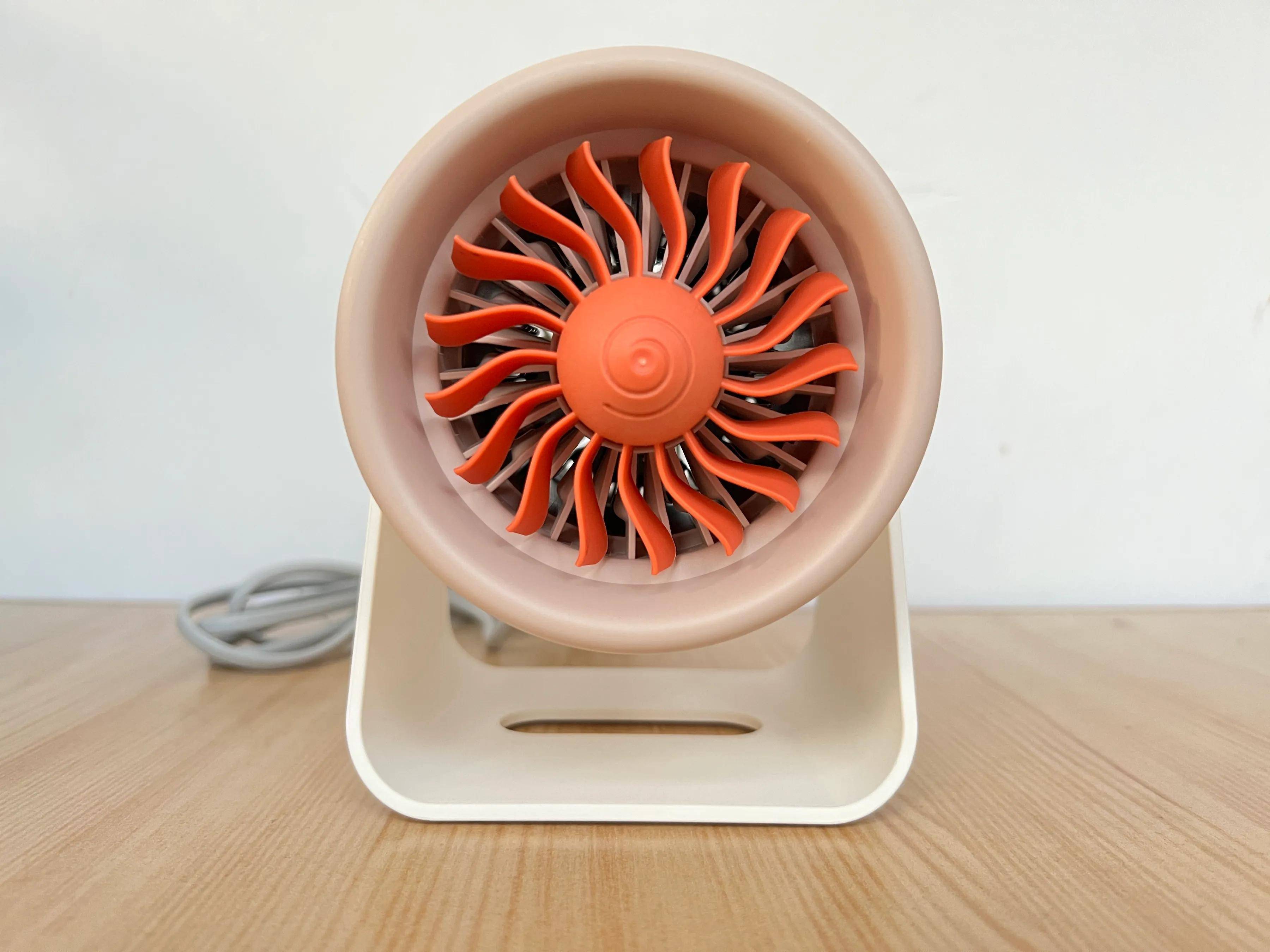 出风口可调角度为50°,上、下25°之间可以自由调节角度,根据桌面高度、所在位置自主调整风向,使暖风精准覆盖使用空间。这个设计相对于传统暖风机的“固定直吹”更能获得最优热气覆盖。