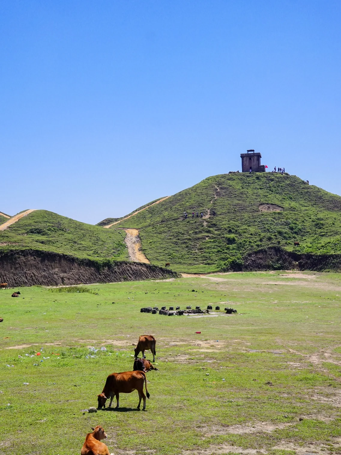 强度不大,到顶后出来一大片广阔还平缓的草原,有点武功山吊马庄的感觉,很舒服~