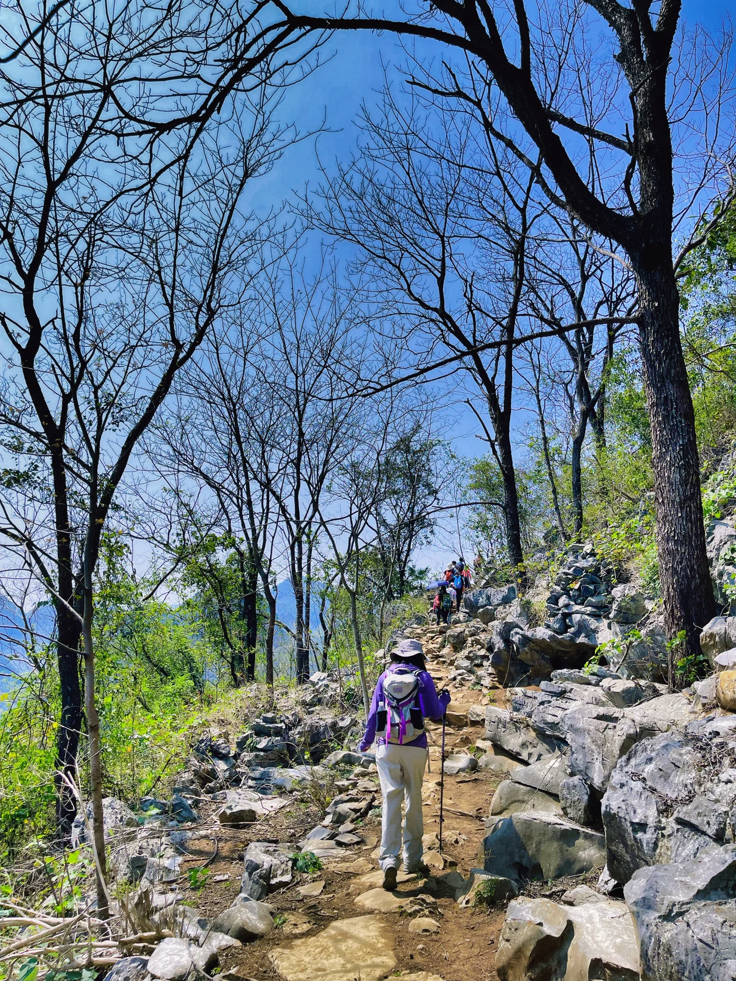 不是休闲路线,有一段比较滑和陡峭的下坡路,防滑的徒步鞋和登山杖我觉得是需要的。