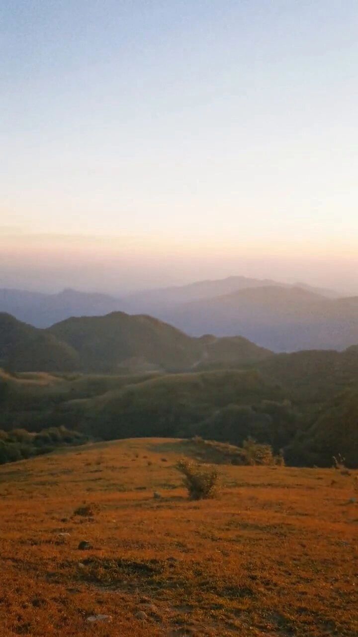 在天空渐渐染上金黄色的余晖时,我站在鸡笼顶大草原上,凝视着夕阳西下的美景。