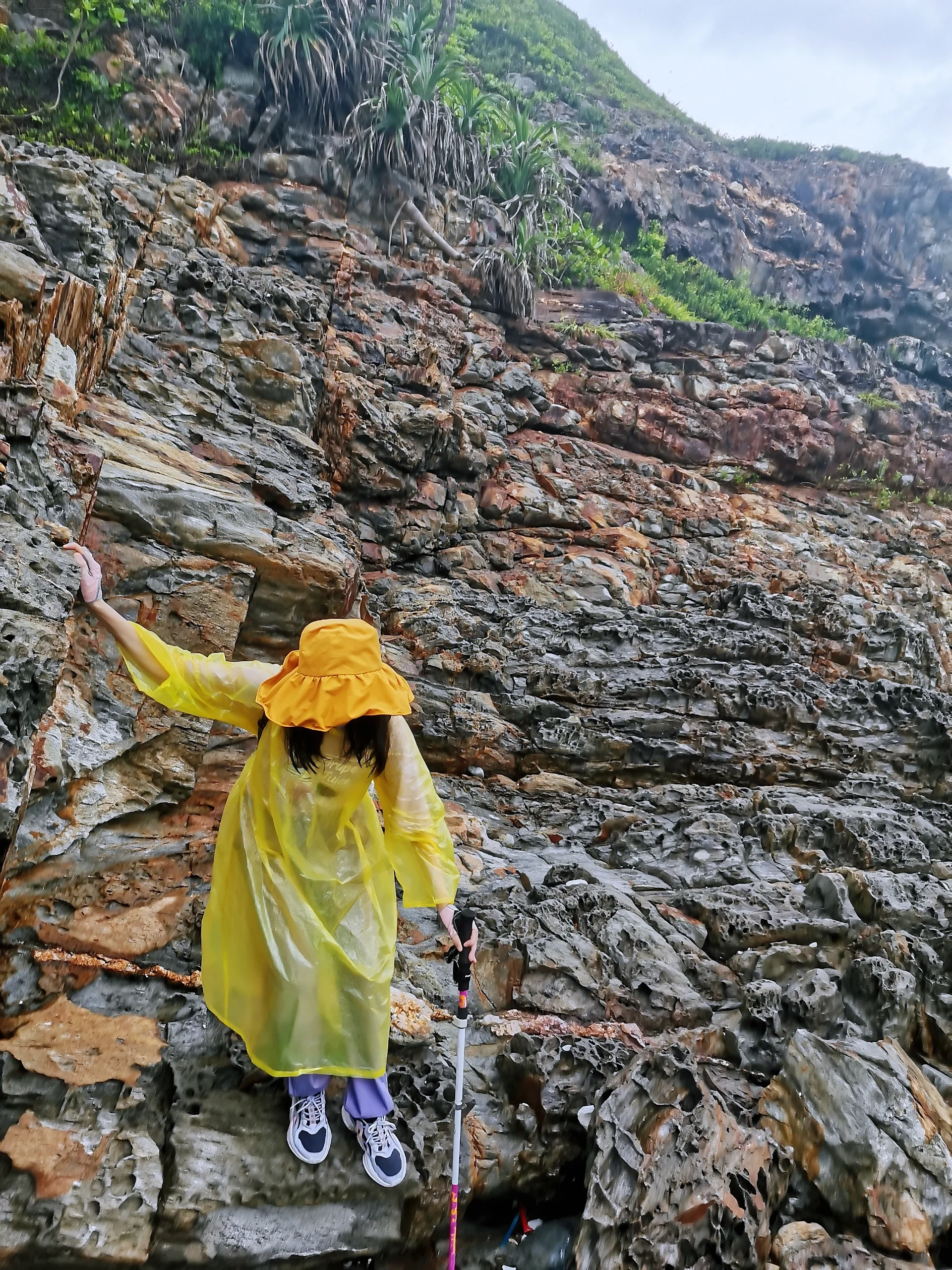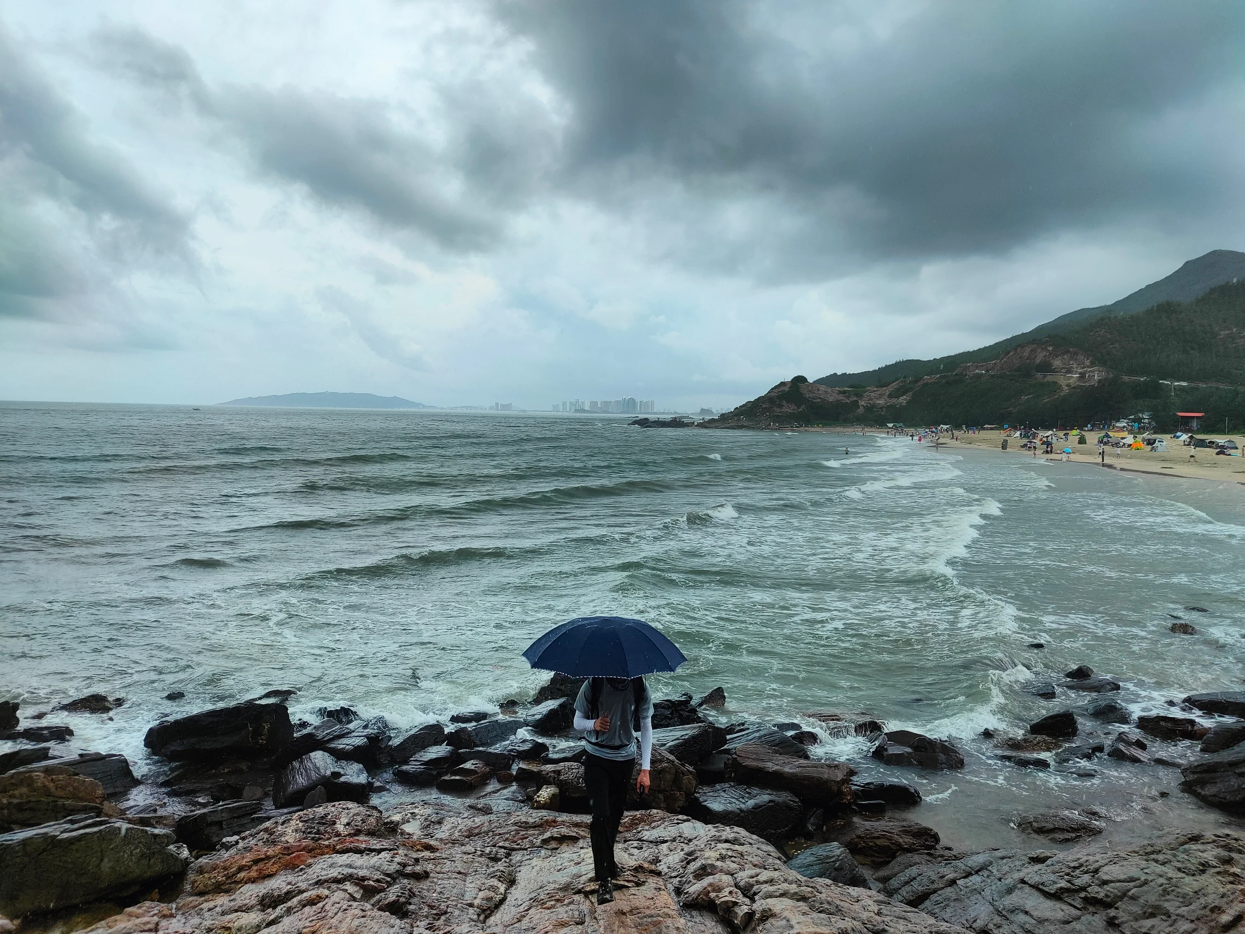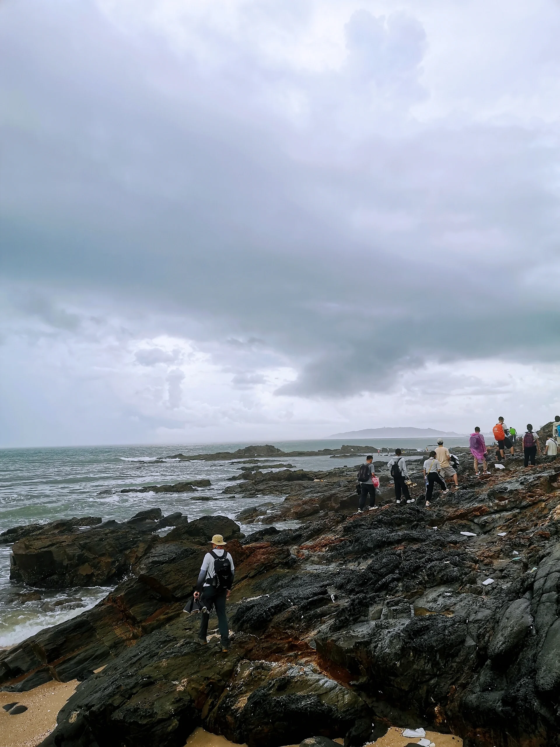 一路上,阵阵小雨说来就来,于是这10km,这5h,是听着浪声走山路,是雨中撑伞越海滩~