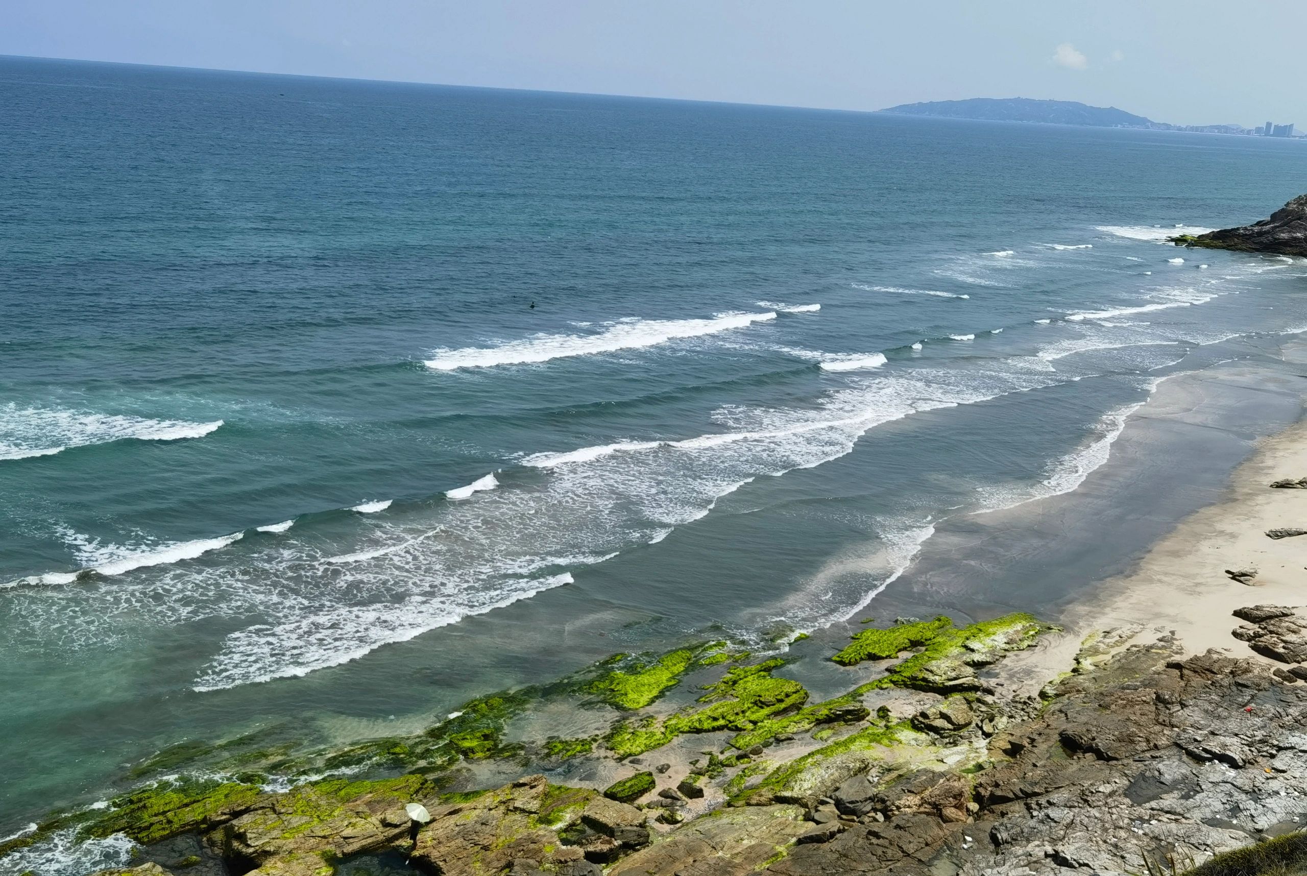 海风很大,卷起的海浪拍打着岸边,不时掀起一些小泡沫,它们在阳光下闪闪发光,像是一串串珍珠散落在海面上。