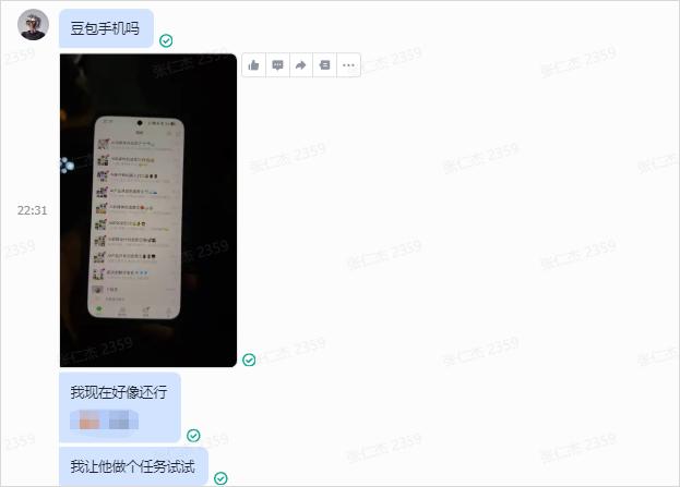 然后,瞬间心中有了不安的感觉,我就回了一下:“我现在还正常,我让它做个任务试试。”。