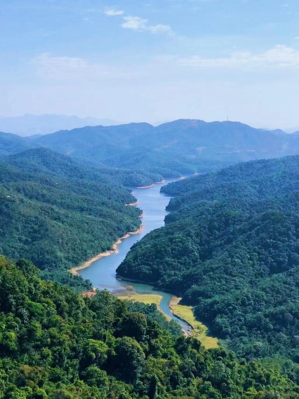 走上观景台,九龙湖就像是一块未经雕琢的绿宝石,镶嵌在群山绿意之中🍃