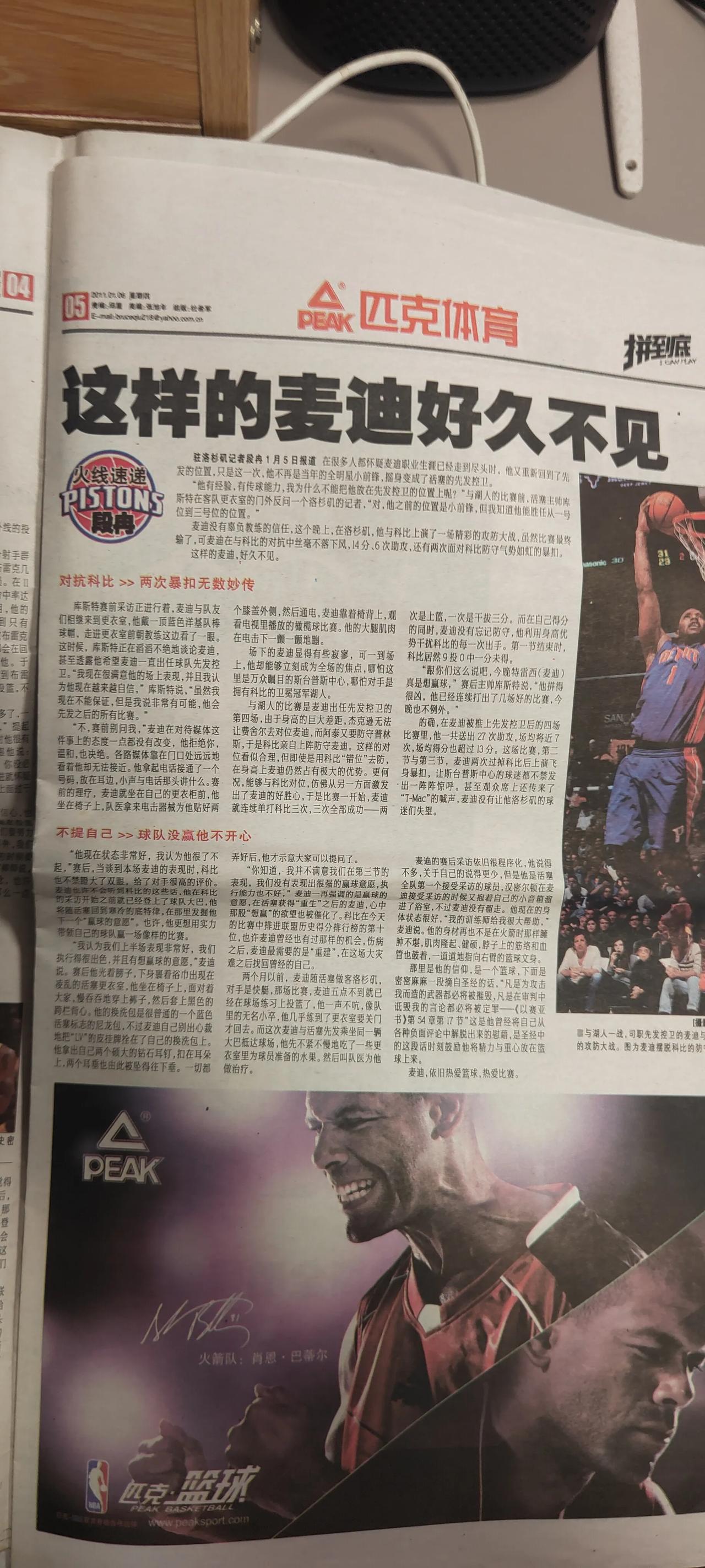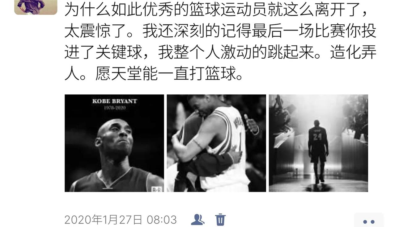 当年认识科比,就是因为麦迪和科比的大战,以及当年的四大分卫的讨论。 坦率的说,作为麦迪的球迷,每次面对湖人,都希望麦迪能够战胜科比。 但是,战胜科比又怎么会那么容易呢?火箭经常被科比斩于马下,那时候对科比不是喜欢,也不讨厌,只是知道他很厉害,湖人也很厉害。 后来麦迪离开火箭,在不同球队流浪,我一边看火箭一边看有麦迪的球队。那时的科麦对决依然是球迷的谈资。 11年的有段时间我会买篮球先锋报,每一份海报我都有留下来,报纸看过就丢了。但只有这份报纸,我保存了下来。那时恰巧麦迪在活塞迎来新角色,恰巧又遇到了科比,恰巧发挥不错。虽然没有赢得比赛,但是看到麦迪依旧能够站在首发的位置上,对于我这个麦蜜来讲,已经十分幸福了。 后来姚明退役,麦迪也退役了,我就渐渐不看NBA了。 幸运的是,科比最后一战的那天中午,我准备从家里启程返校准备论文答辩,央视直播了这场比赛,我见证了科比在生涯最后一战夺得60分的神技,最后一球投中的时候,我激动万分。应该就是在那个时候,我对科比的敬佩提升到很高的高度。 随后的生活,因为工作的繁忙,已经和篮球渐行渐远。 时间到齿轮拨到了2020年1月27日早上,那是过年的时候,醒来以后打开新闻,就看到了这个噩耗。在那之前,我从没想过我会为一个明星的离世而哭,更没有想过会为一个不是自己偶像的人而哭。但事实就是那天早上我很难过,真的哭了。 我想,科比真的是用他的职业生涯和职业精神感动了我,影响了我,我才会如此动容。 愿天堂一切都好。