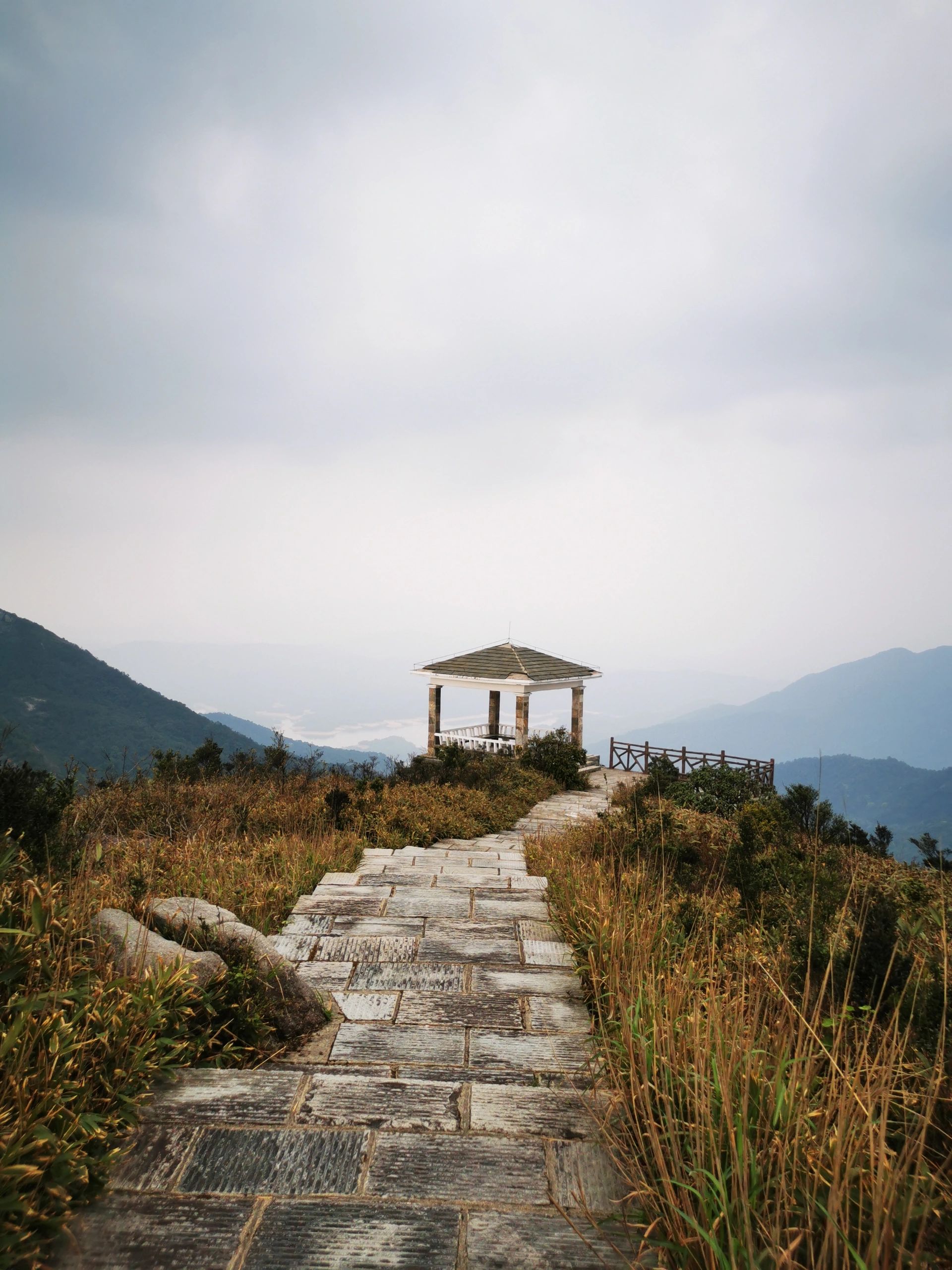 第一峰凉亭就在不远处,见图17,从第二峰下来左转下去第一峰,第一峰直接往前下山就到月牙湖了。