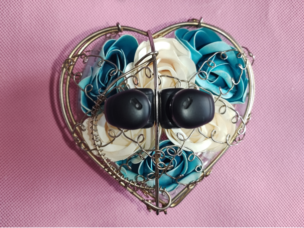 耳机左右声道独立存放,无线吸附式充电,取放自如。耳机摒弃传统立柱式,采用BUF环扣人体工学设计,均匀夹持耳廓,无异物感,适配多数人耳型。耳机外形采用了对称的设计,两个耳机只有左右声道的标识不同,背面黑色的外观,与充电仓内部的配色有一致,而正面采用了金属质感的黑色电镀,增加了高端的气质,同时为隐藏式触摸按键,全触摸操作,机身无物理按键。