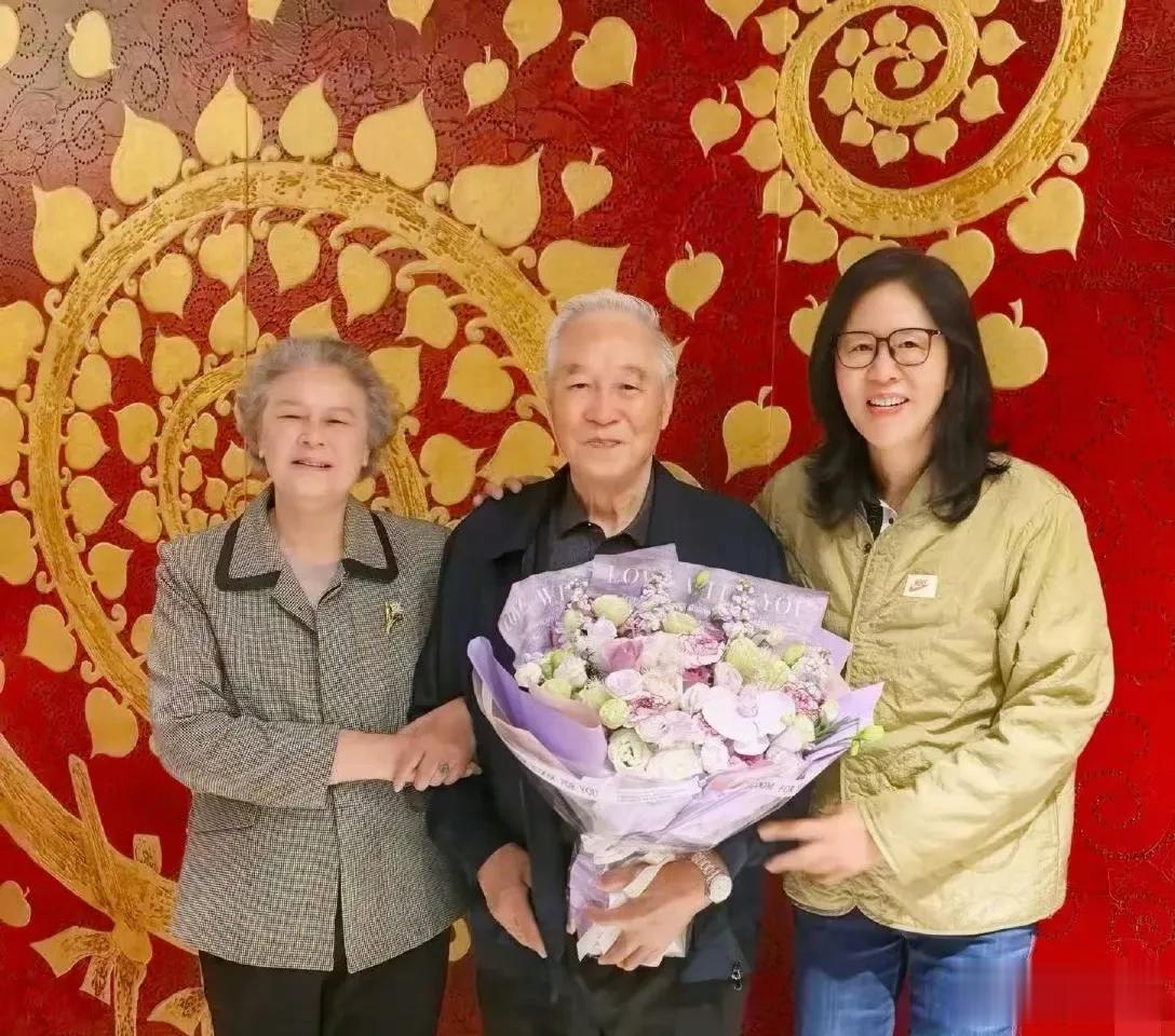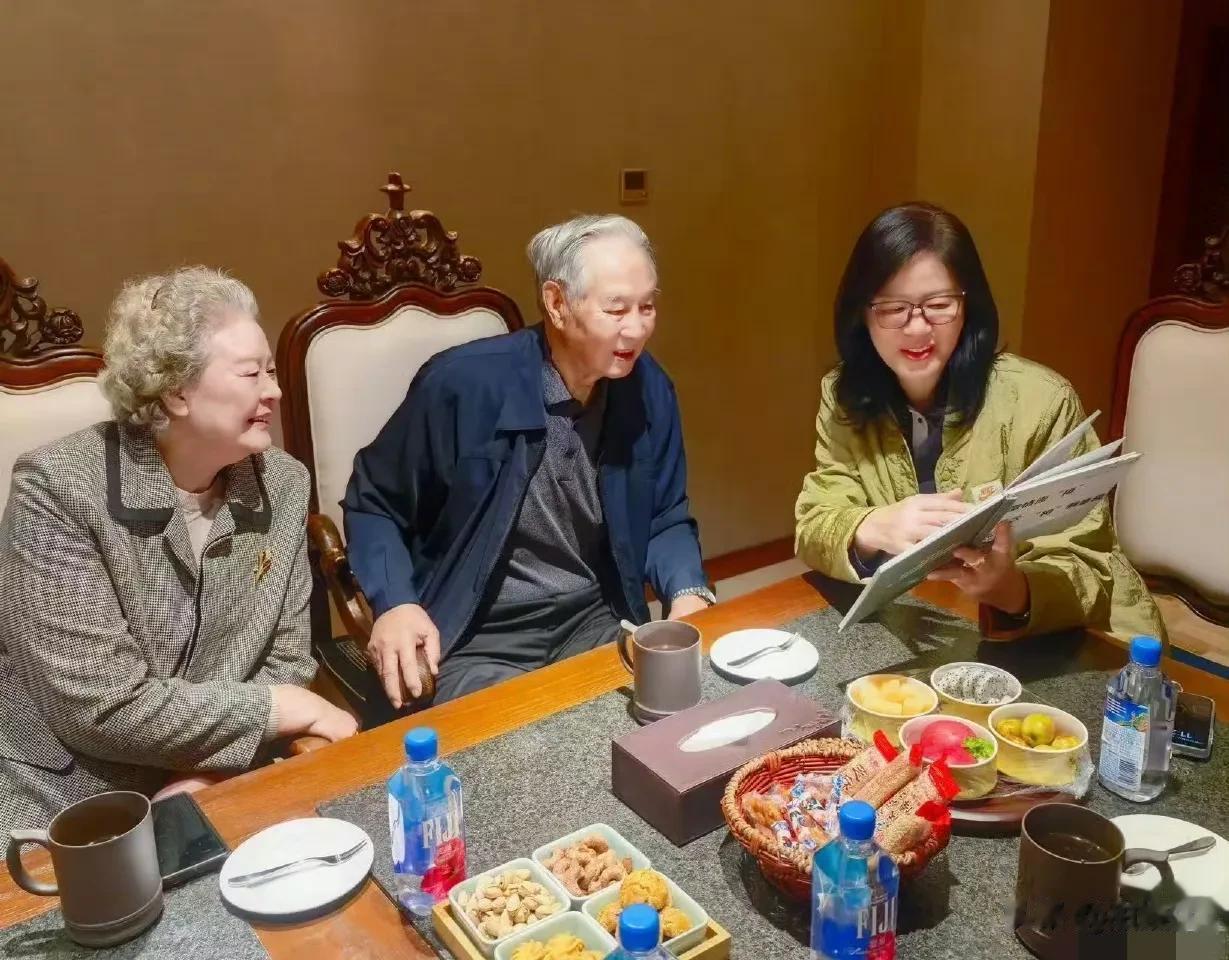 照片里,郎平笑着和邓教练夫妻俩靠在一起合影。