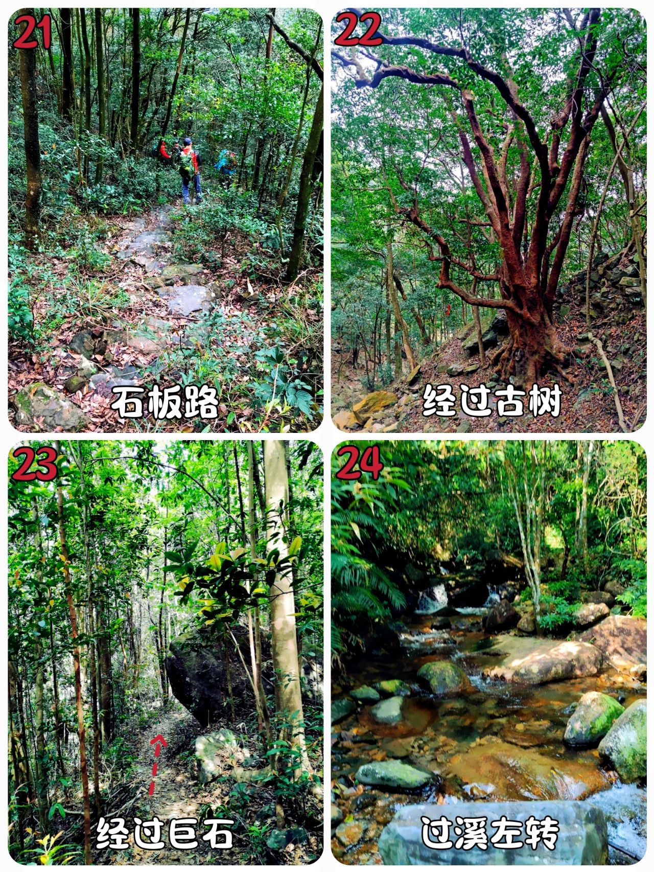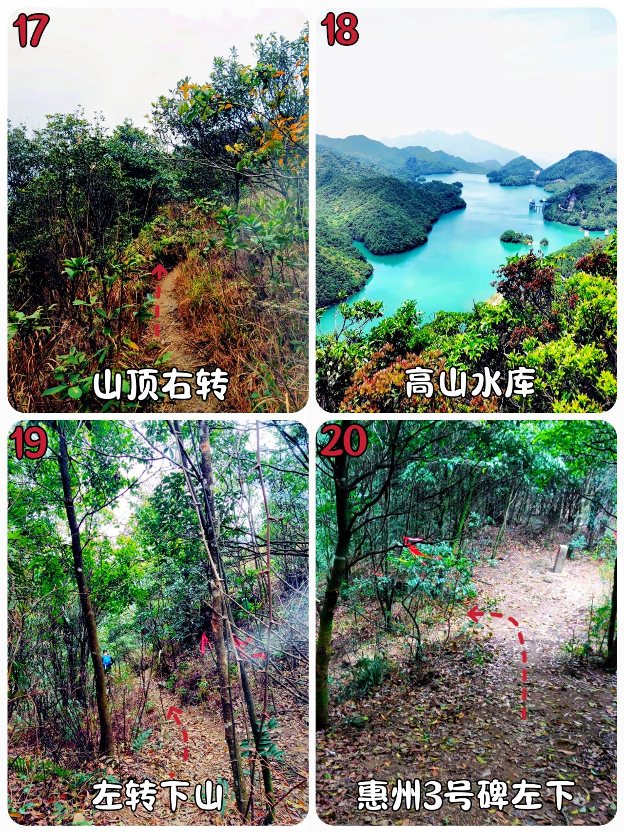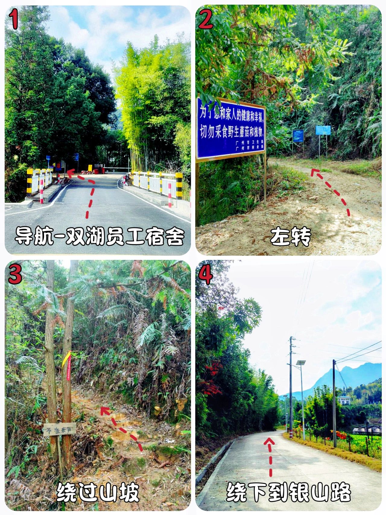 →惠州3号碑左下→经过古树→过巨石→过小溪后左转→过电塔→沿溪下→环线汇合路口→银山路→出口。