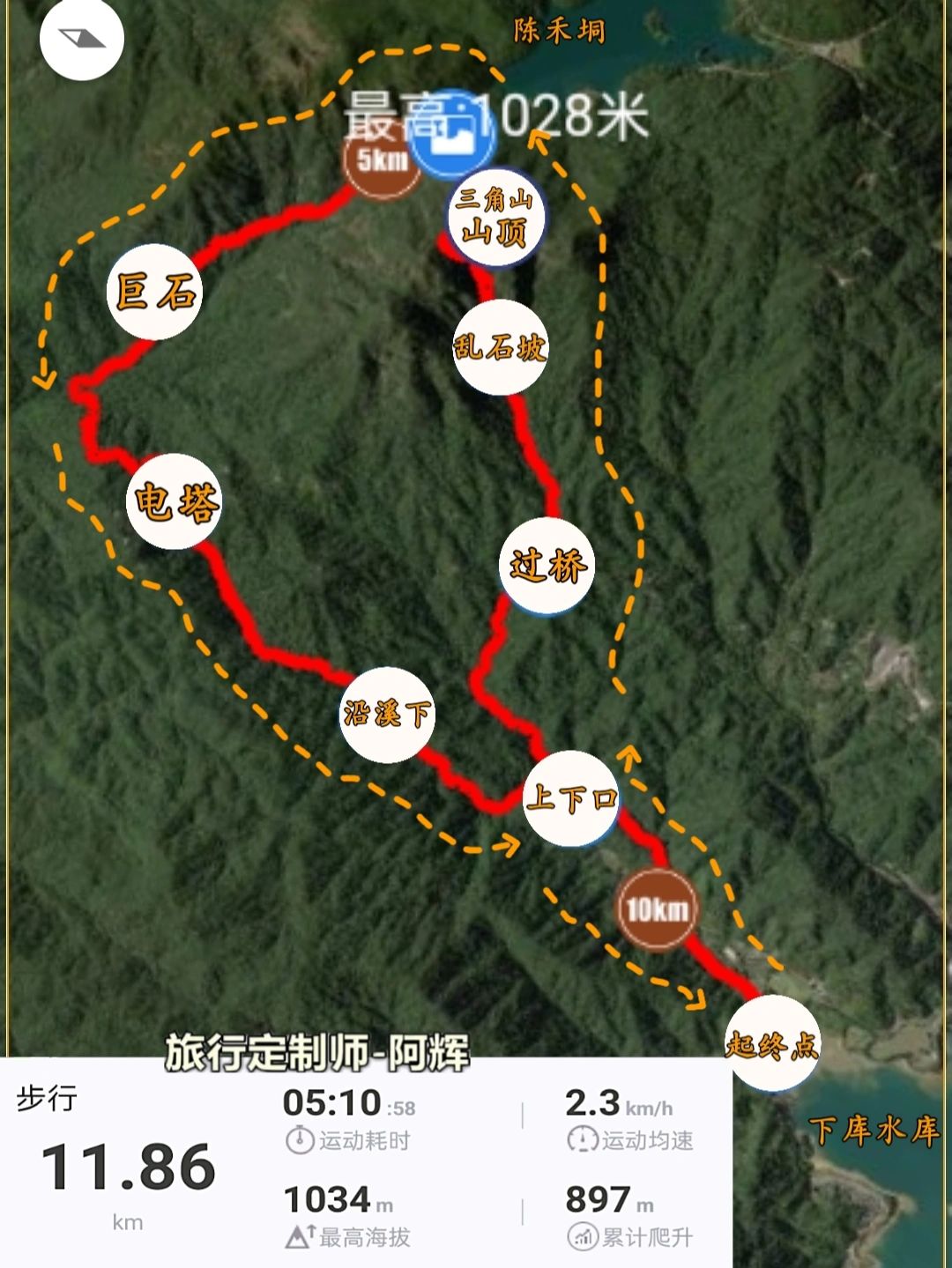 徒步环线全程约12公里途经,高山、深谷、溪流、古道、密林、乱石岗,在山顶可眺望国内Z大的高山蓄能水库