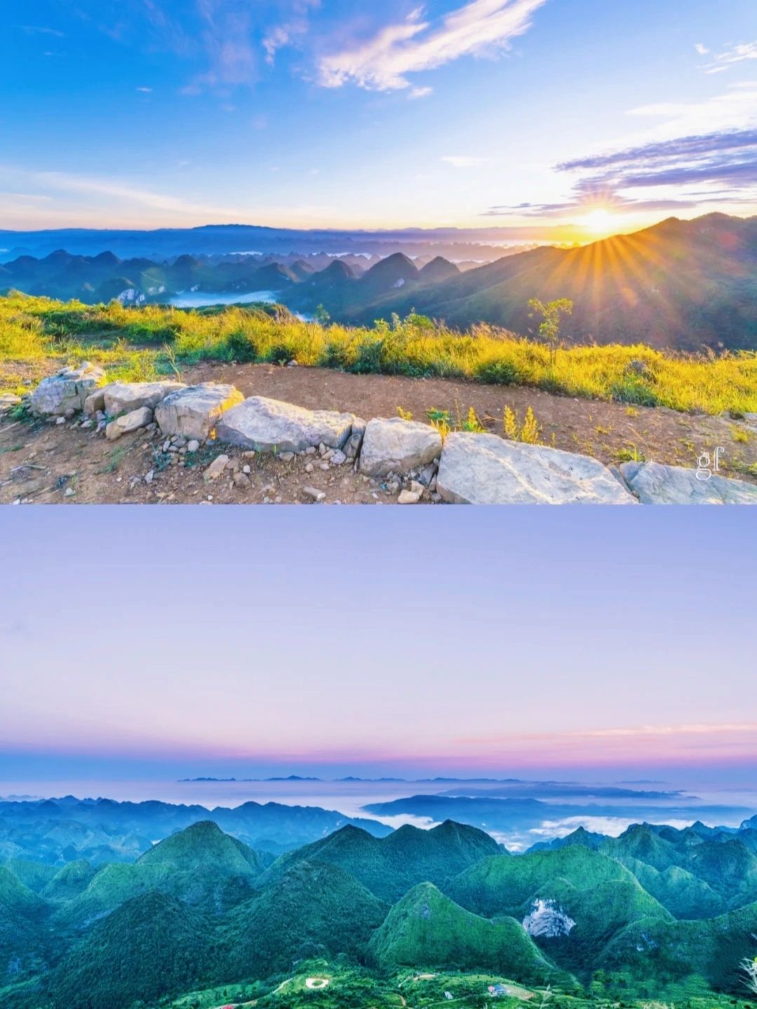🌷05、有教练或者本身是户外爱好者的, 登顶之后,傍晚可以欣赏峰丛日落,如果带着帐篷去露的,晚.上还可以欣赏繁星银河。