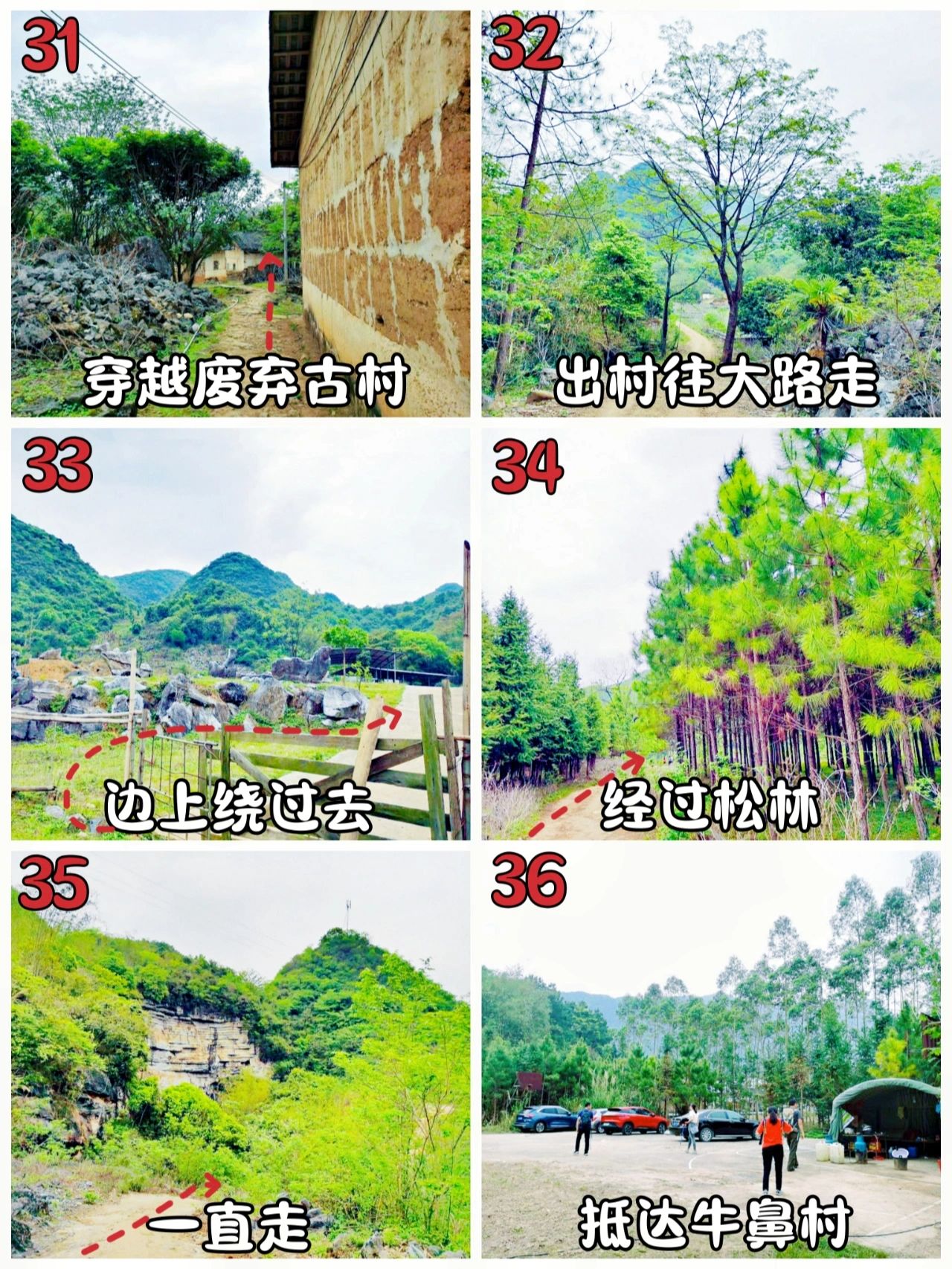 ⛳全程:导航牛鼻村→打摩的到江咀村(30公里)→竹山背→大溶洞→峡谷大草原→喀斯特石林→百年古道→饭甑洞天坑→睇牛岗→牛鼻村