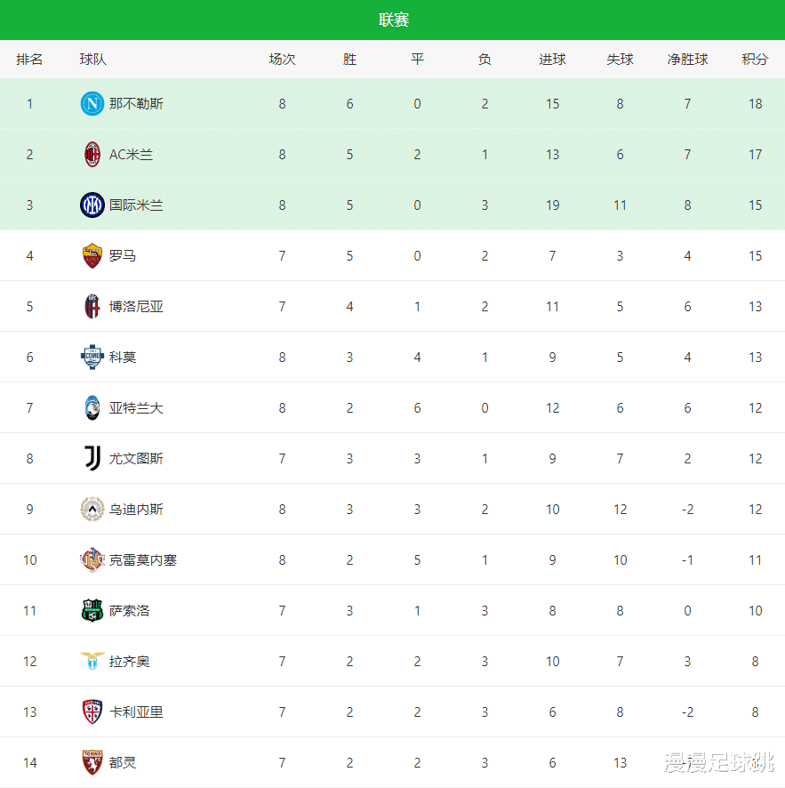 意甲第8轮战焦点大战,那不勒斯对阵国际米兰的榜首之争,谁全取3分谁登顶,结果在欧冠2-6大败的意甲卫冕冠军笑到最后,3-1力克国米,领跑积分榜;帕尔马0-0战平科莫;亚特兰大客场被克雷莫内塞1-1逼平,英超名将瓦尔迪破门建功。