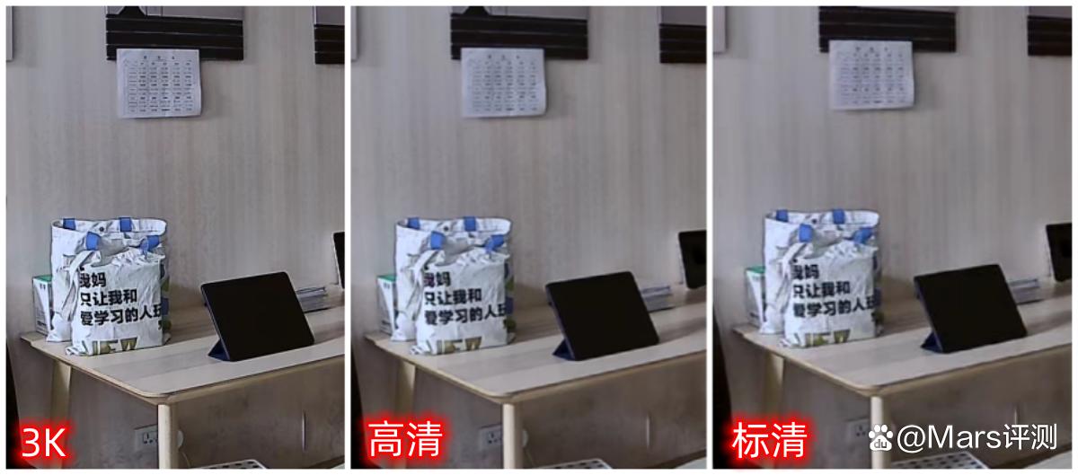 亮光场景和无光场景下,三种清晰度的画质对比。(测试的时候餐厅的灯忘记打开了,亮光是客厅的吸顶灯)