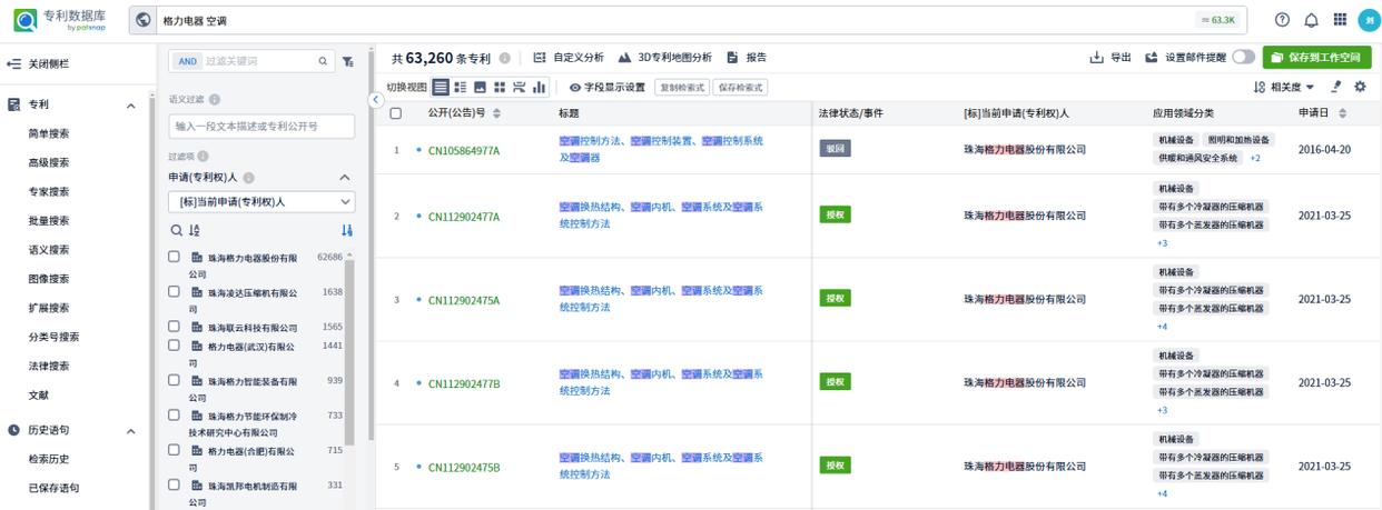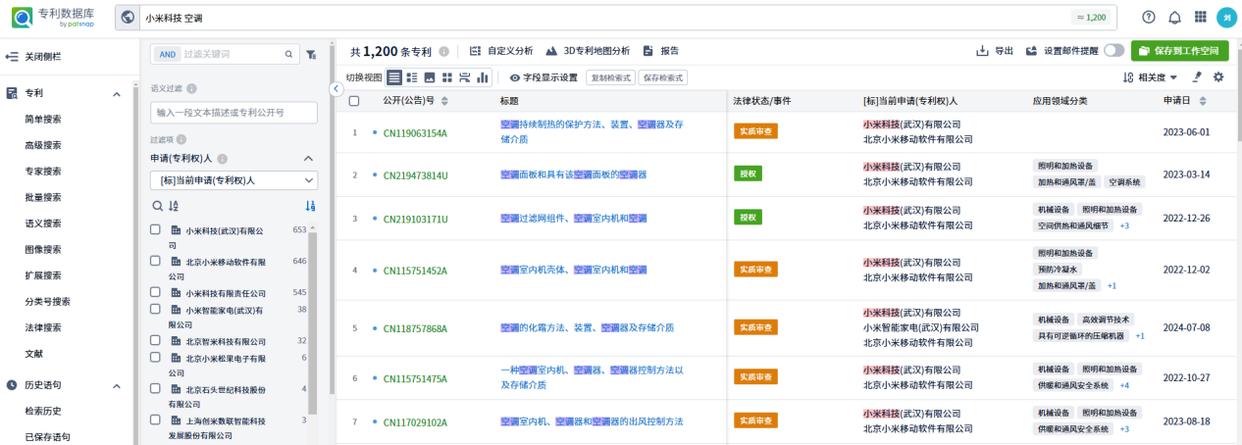 在空调领域,小米更是无法与格力相抗衡。2024年12月22日,在智慧芽专利平台上,如果用“小米科技+空调”进行模糊搜索,相关专利信息仅为1200条;如果用“格力电器+空调”进行模糊搜索,相关专利信息高达为63260条。单纯从专利信息数量上看,格力申请的专利是小米的五十多倍。