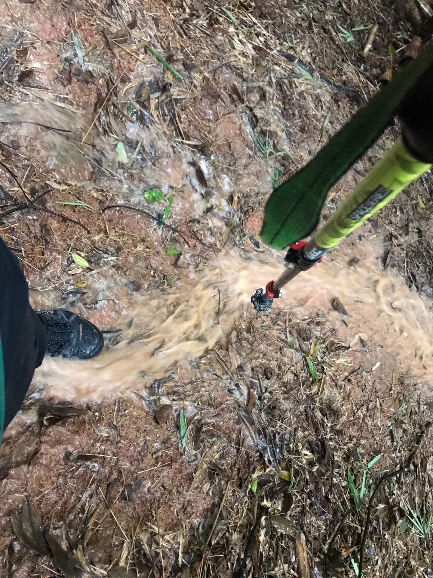 十多分钟后雨停,继续进上,走了没多久到达无路路段,天空又开始下大雨,直到下午六点多快出山时雨才停。