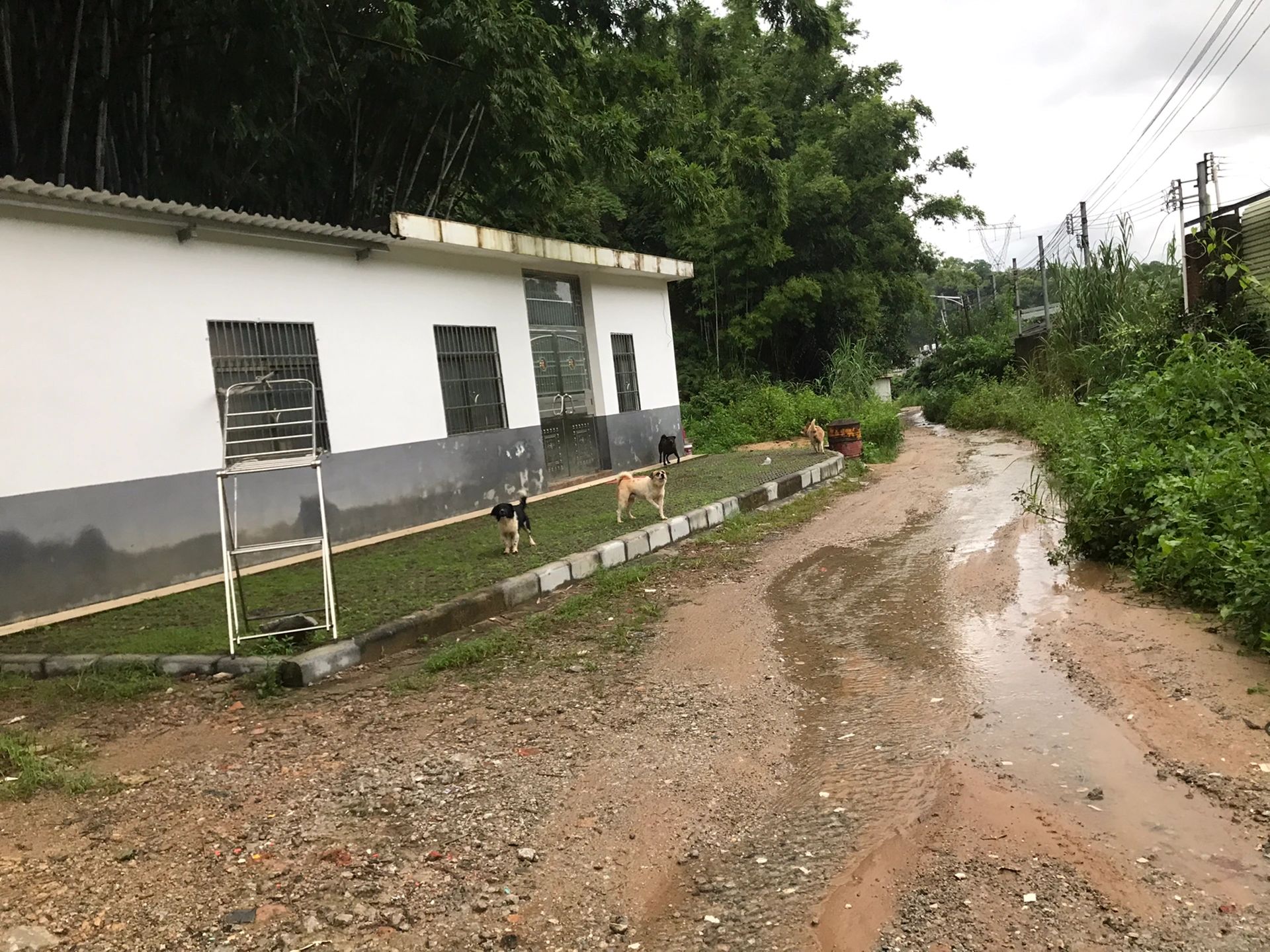 尽量避免后背对着某条狗,其它狗一直狂吠,并作势想冲过来,花了很长时间才走出这个养殖场。