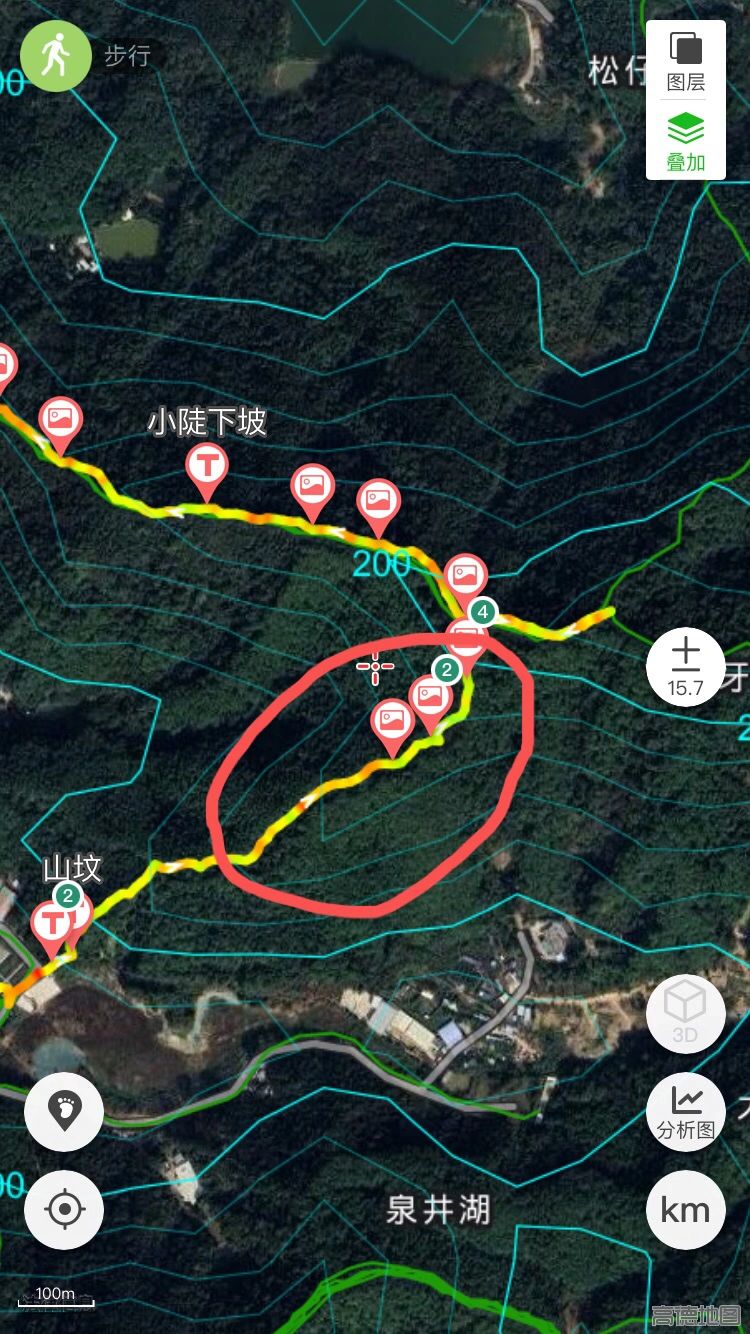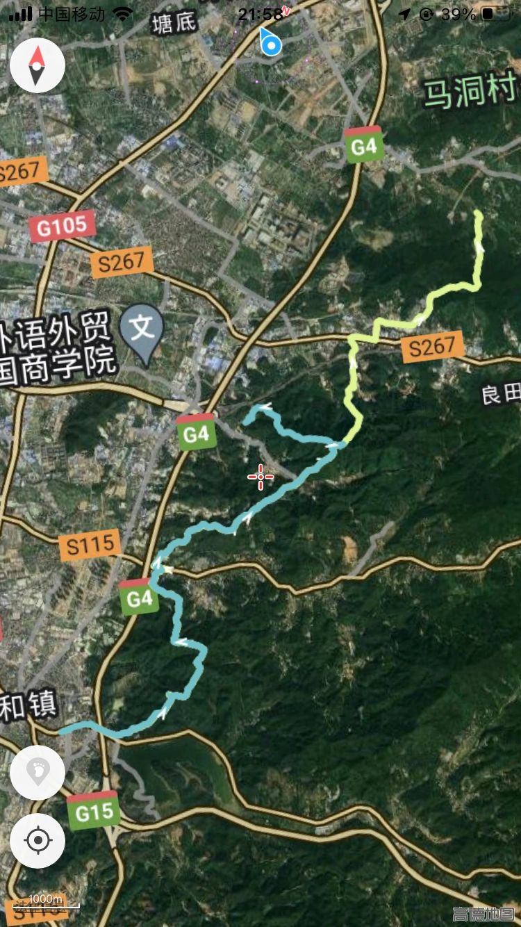 本来计划要走的线路为图2中蓝色+绿色轨迹(15km)