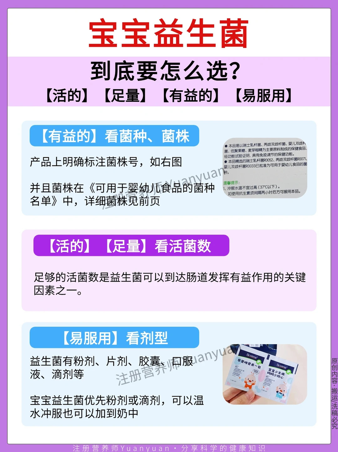 ⭐具体到宝宝益生菌选择,有这几个要点: