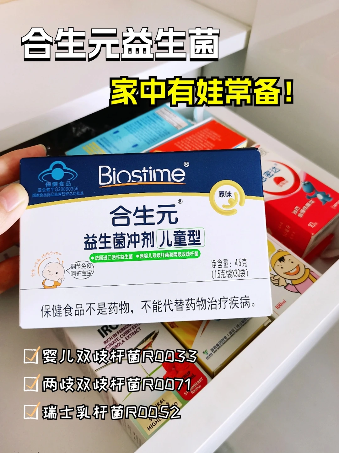 像我家里常备的就是合生元益生菌,它是比较少有能完全满足我刚刚提到的益生菌选择3大要点的。