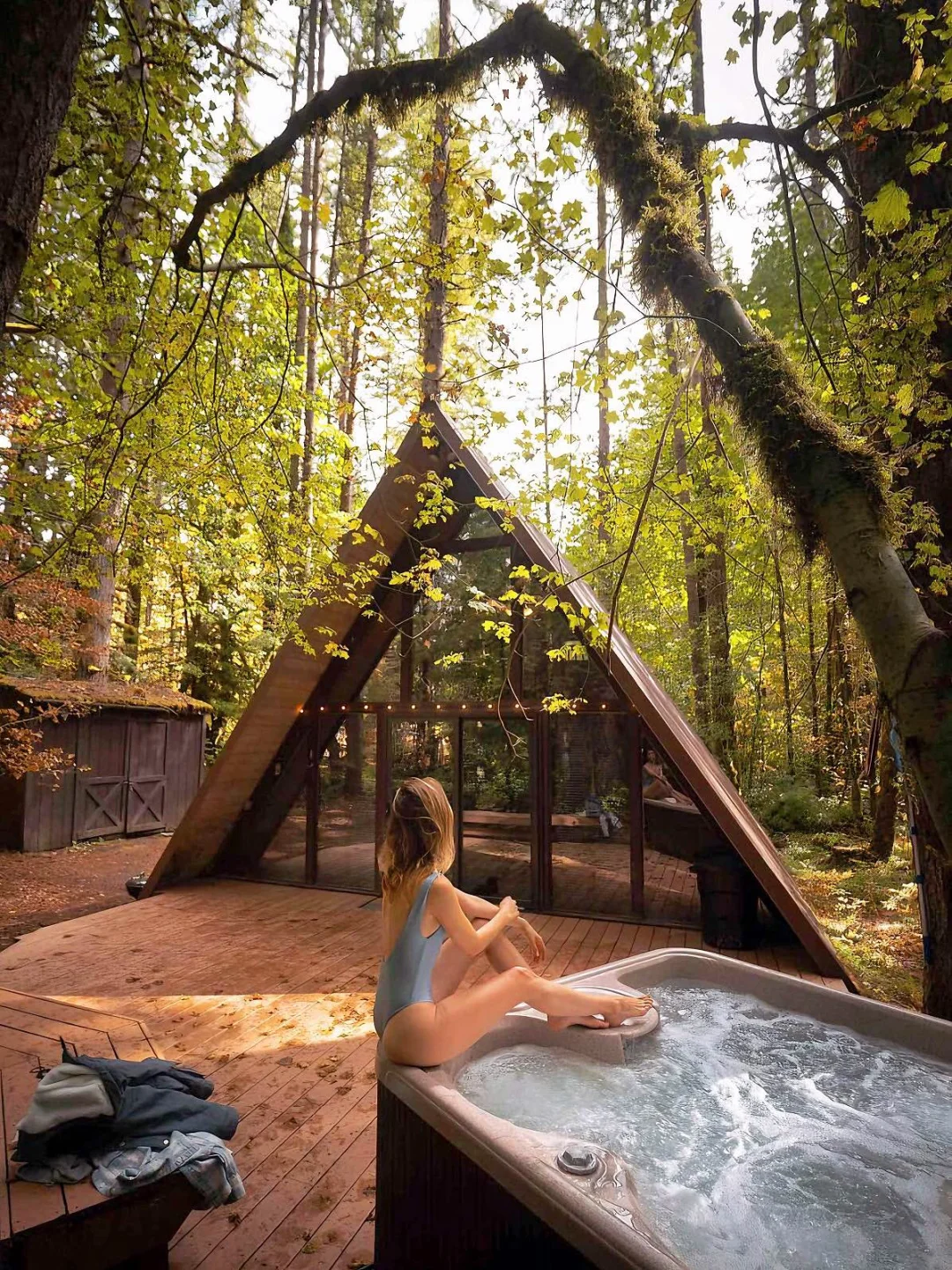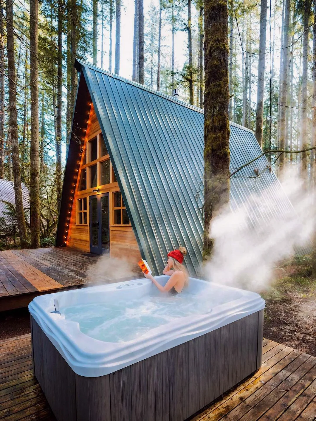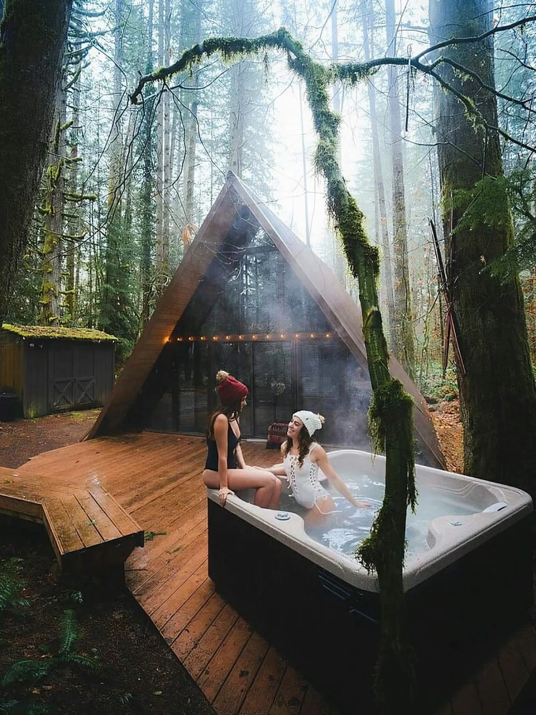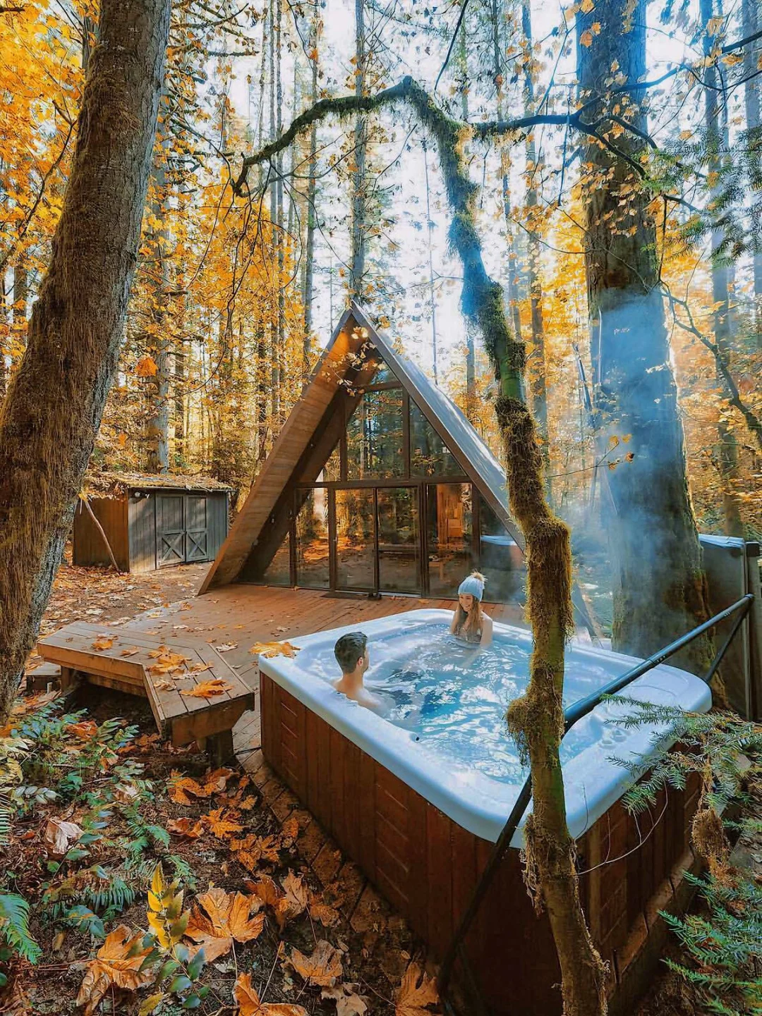 ▪️ 小屋拥有一个超舒服的户外浴池,在里面泡个澡真的太惬意了