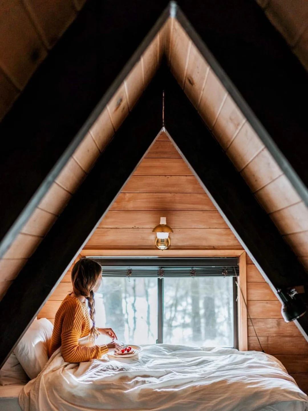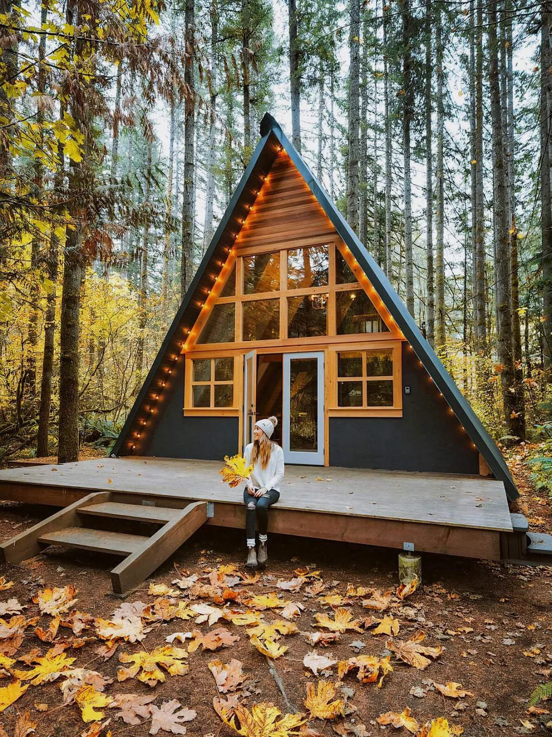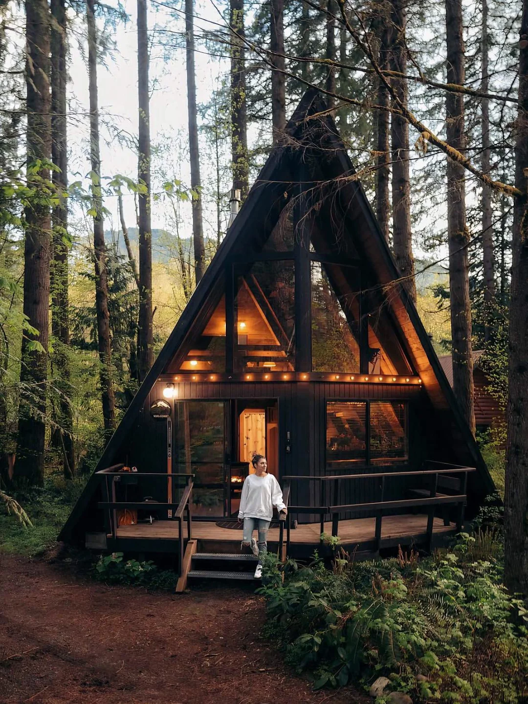 ▪️ 这是一家超有人气的A字型小木屋,坐落在森林里,童话感十足