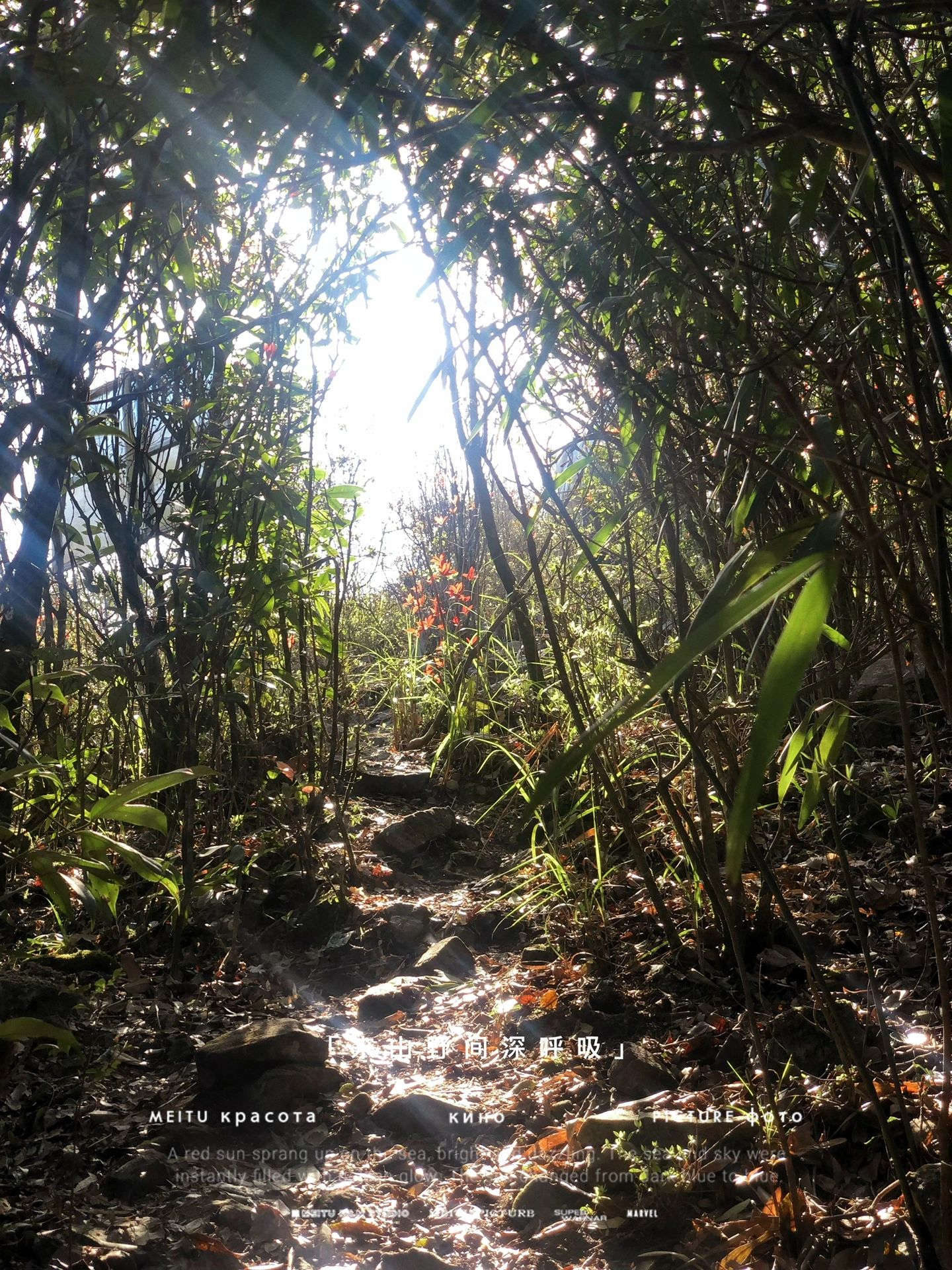 🍃在途中会有一片小竹林,虽然有很多丝带标记,但是还是很容易迷路,到后面还是硬走了一条路出来….而且要小心不要被划伤哦!