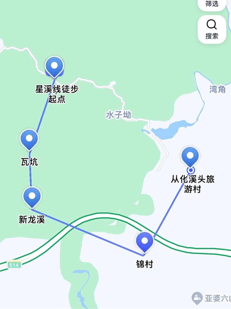 路线:星溪线徒步起点——瓦坑——新龙溪——苏茅坪——锦村——溪头村(图九)