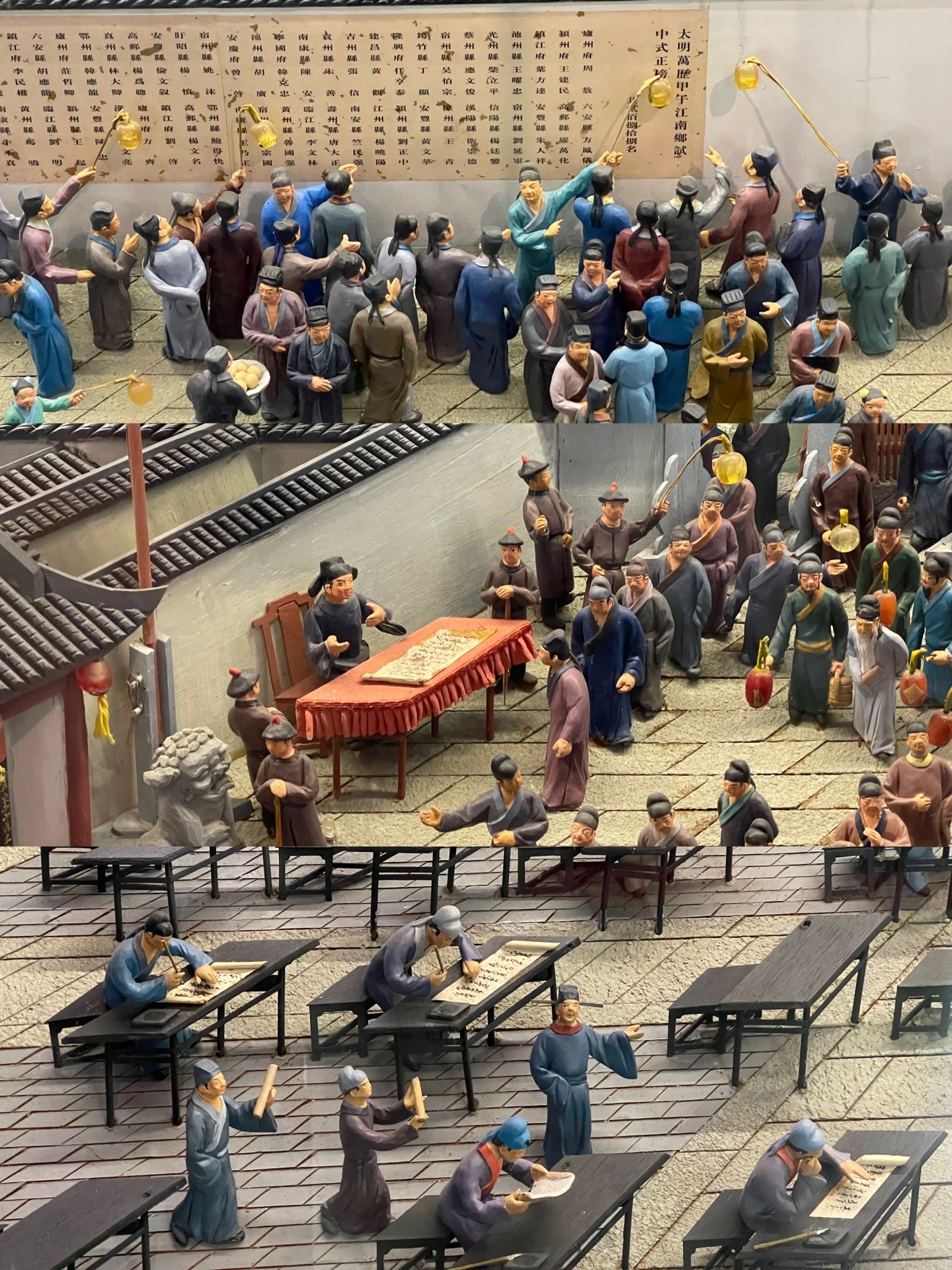 万松书院有一个很大的相亲广场非常热闹😂,书院里有一大幅古时科举衣锦还乡的立体画