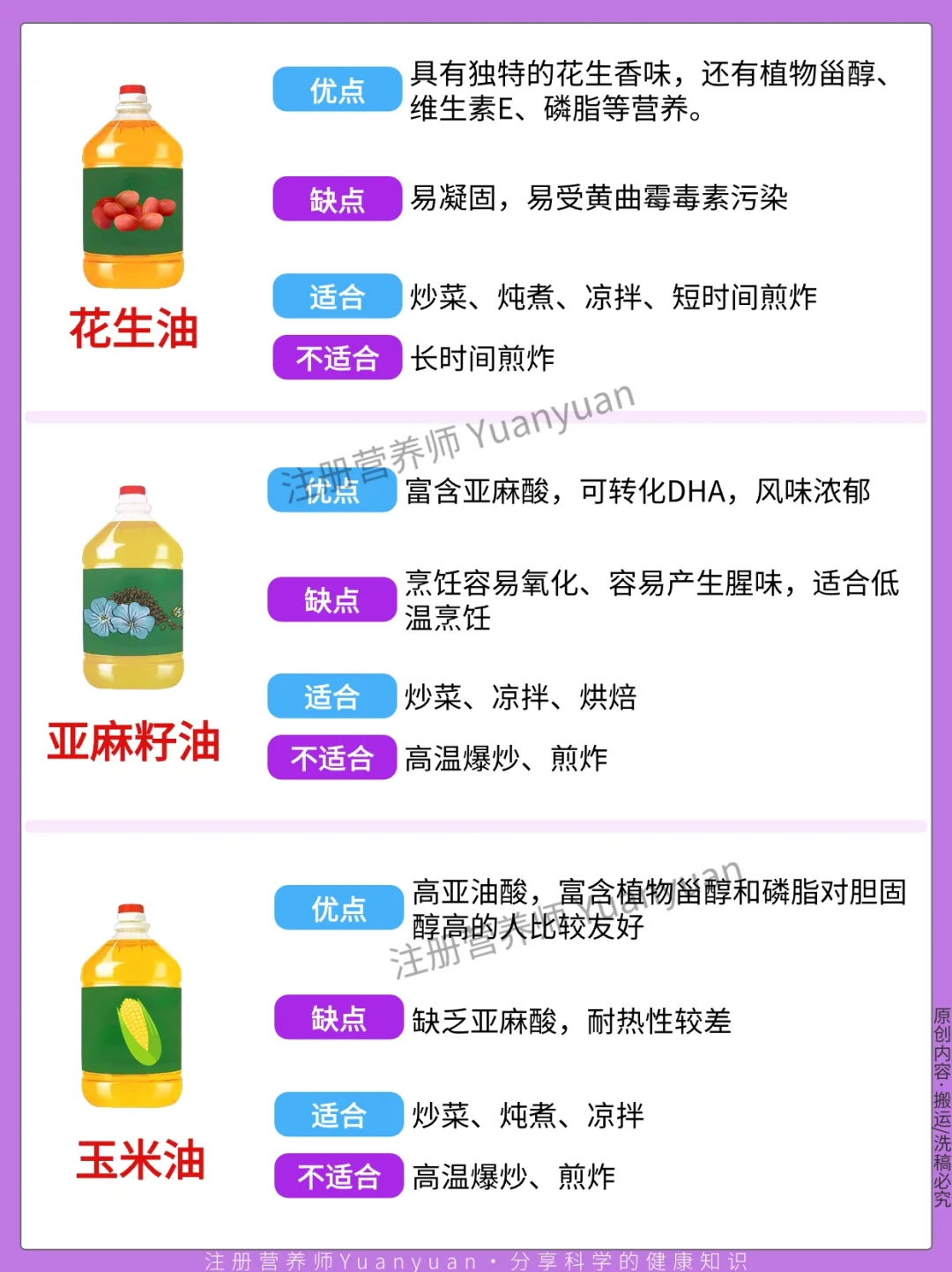 今天就给大家盘点一下常见食用油的营养特点和用途⏩图2-4